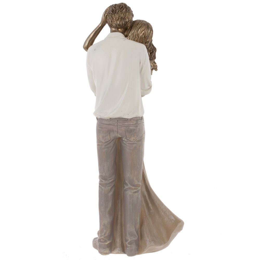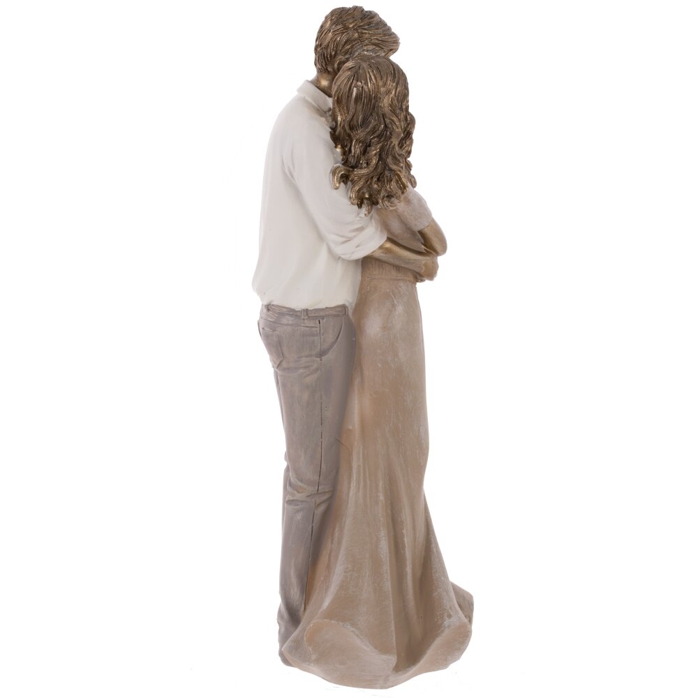 Декоративная фигурка "Влюбленная пара" выполнена из современных полимерных материалов и поражает своей элегантностью и утонченностью. Она изображает мужчину и женщину в нежных объятиях, что символизирует любовь, гармонию и близость. Скульптура отлично проработана: плавные линии и изысканные детали передают всю трепетность момента, а плавные изгибы и движение ткани платья добавляют динамики образу. Золотистый оттенок лиц и рук создает ощущение тепла и уюта, делая композицию особенно романтичной. Такая фигурка станет прекрасным украшением интерьера, символом семейного счастья или оригинальным подарком для близких. Ее современный стиль и изящество подчеркнут атмосферу уюта и гармонии в любом доме.
