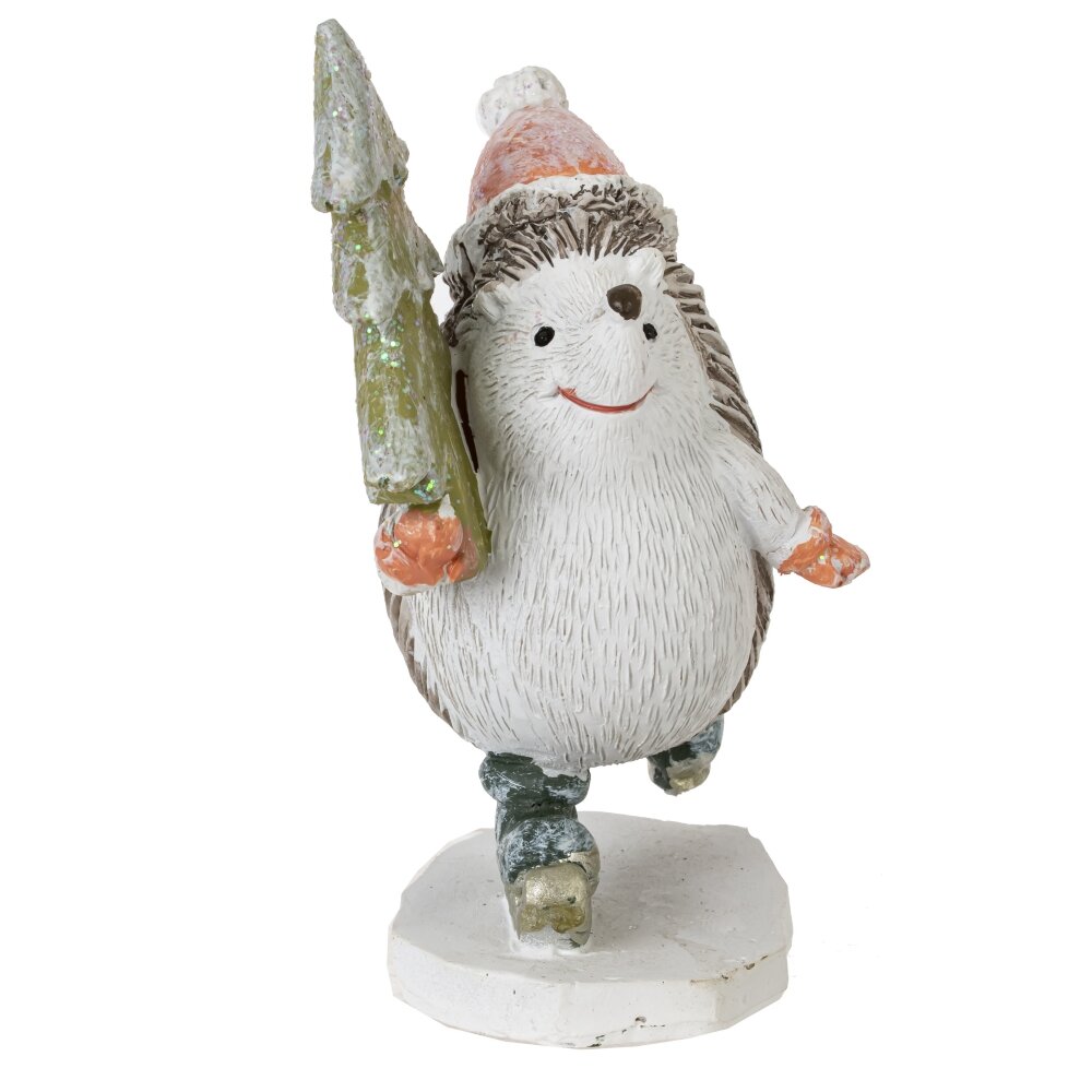 Декоративная фигурка "Ёжик" из полистоуна — это очаровательная композиция, изображающая милого ежика на коньках, который радостно несет елочку в руках. Эта сцена наполнена духом зимних забав и праздника, вызывая приятные эмоции и улыбки у каждого, кто ее видит. Она станет отличным сувениром или запоминающимся подарком для друзей и близких, напоминая о радостных зимних моментах.