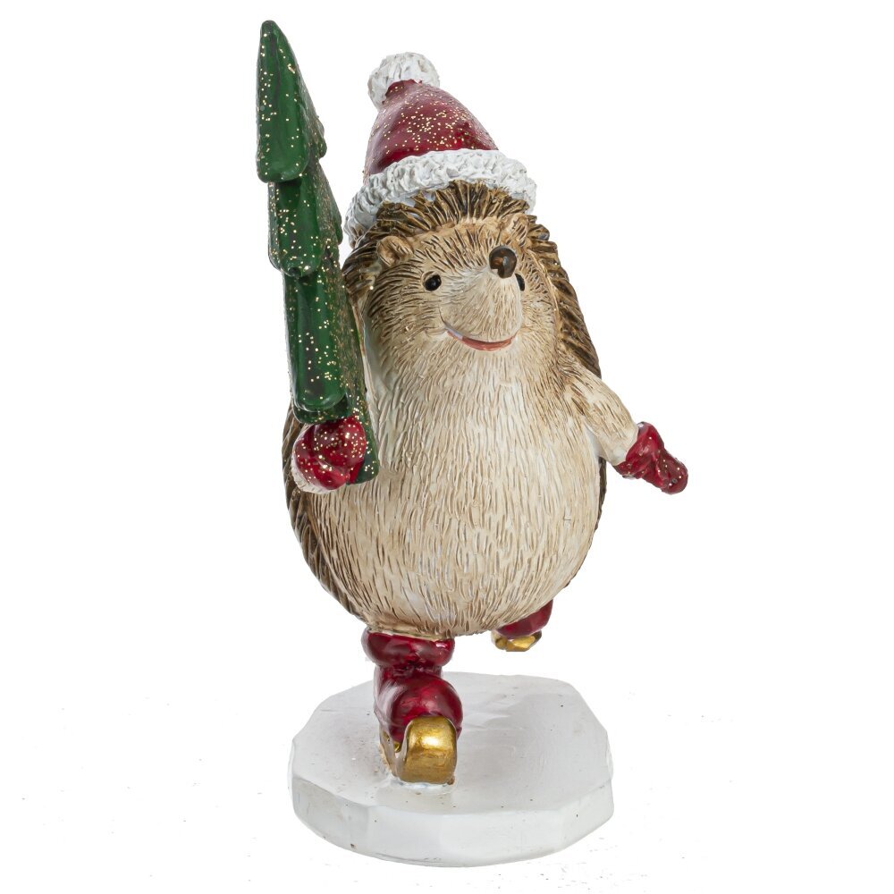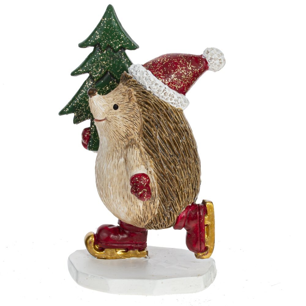 Фигурка в виде милого ежика на коньках, держащего в лапке новогоднюю елочку. Изделие выполнено из полимерных материалов, с особым вниманием к деталям. Фигурка обязательно привнесет нотку очаровательного лесного стиля в любой интерьер.
