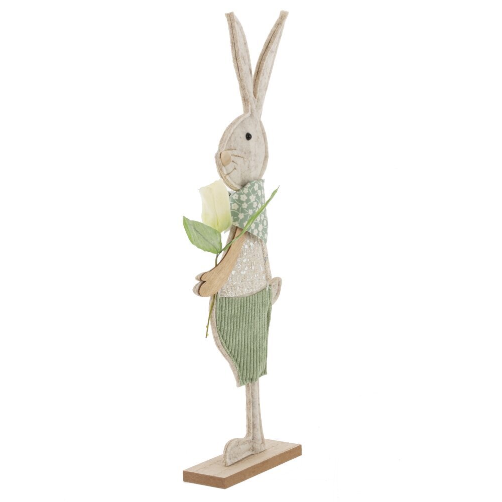 Фигурка Зайца с цветком в лапке – это прекрасное украшение для праздника Пасхи. Изделие выполнено из текстильных материалов в нежных бежевых тонах, что придает ей неповторимый шарм. Фигурка стоит на подставке, что делает ее устойчивой и удобной в использовании. Она добавит праздничности любому интерьеру и станет настоящей гордостью вашего Пасхального декора.