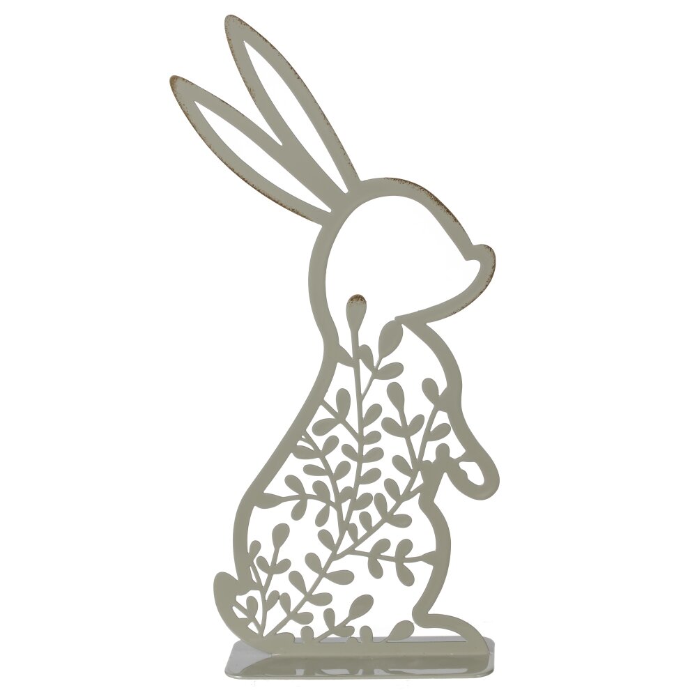 Декоративная фигурка «Заяц» – стильный пасхальный акцент для вашего интерьера. Силуэт зайчика выполнен из прочного металла и закреплён на устойчивой прямоугольной подставке. Тонкий изящный контур дополнен ажурным растительным орнаментом, что создаёт ощущение лёгкости и воздушности. Нейтральный светлый оттенок гармонично сочетается как с яркими пасхальными композициями, так и с лаконичным современным декором. Фигурку удобно размещать на подоконнике, каминной полке, сервировочном столе или в праздничной композиции с яйцами и свечами. Металл устойчив к деформации и легко очищается от пыли, поэтому украшение будет радовать вас не один сезон, создавая весеннее, тёплое и уютное настроение в доме.