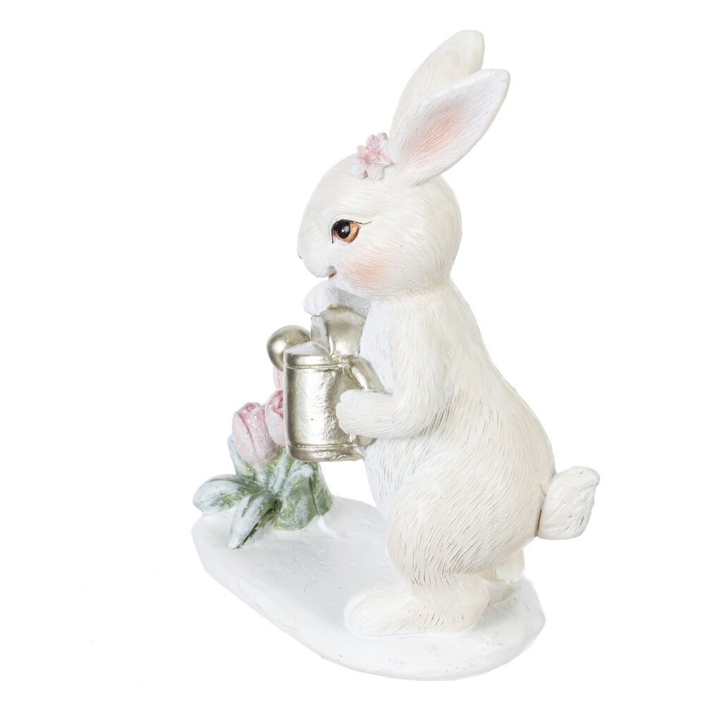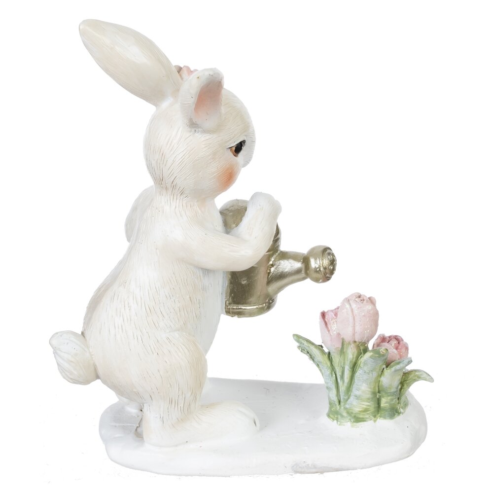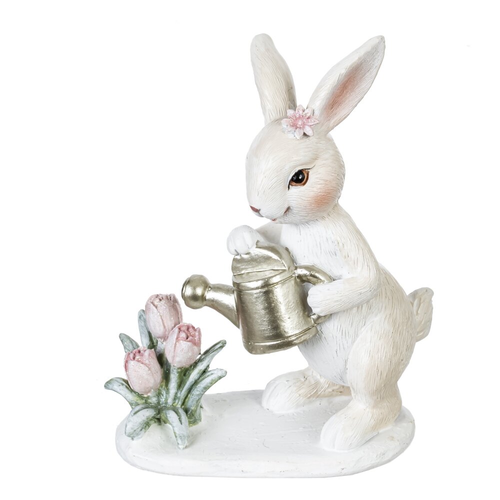 Декоративная пасхальная фигурка «Зайчик с лейкой» станет трогательным акцентом весеннего декора дома. Милый белый зайчонок с розовым цветком у ушка поливает из золотистой лейки нежные тюльпаны, создавая атмосферу заботы и пробуждения природы. Аккуратная проработка деталей, мягкая пастельная расцветка и устойчивое основание делают фигурку идеальной для оформления праздничного стола, подоконника, полки или пасхальной композиции. Подойдёт в подарок на Пасху, порадует детей и взрослых, гармонично впишется в интерьер в стиле прованс или шебби-шик, добавляя дому уюта и весеннего настроения.
