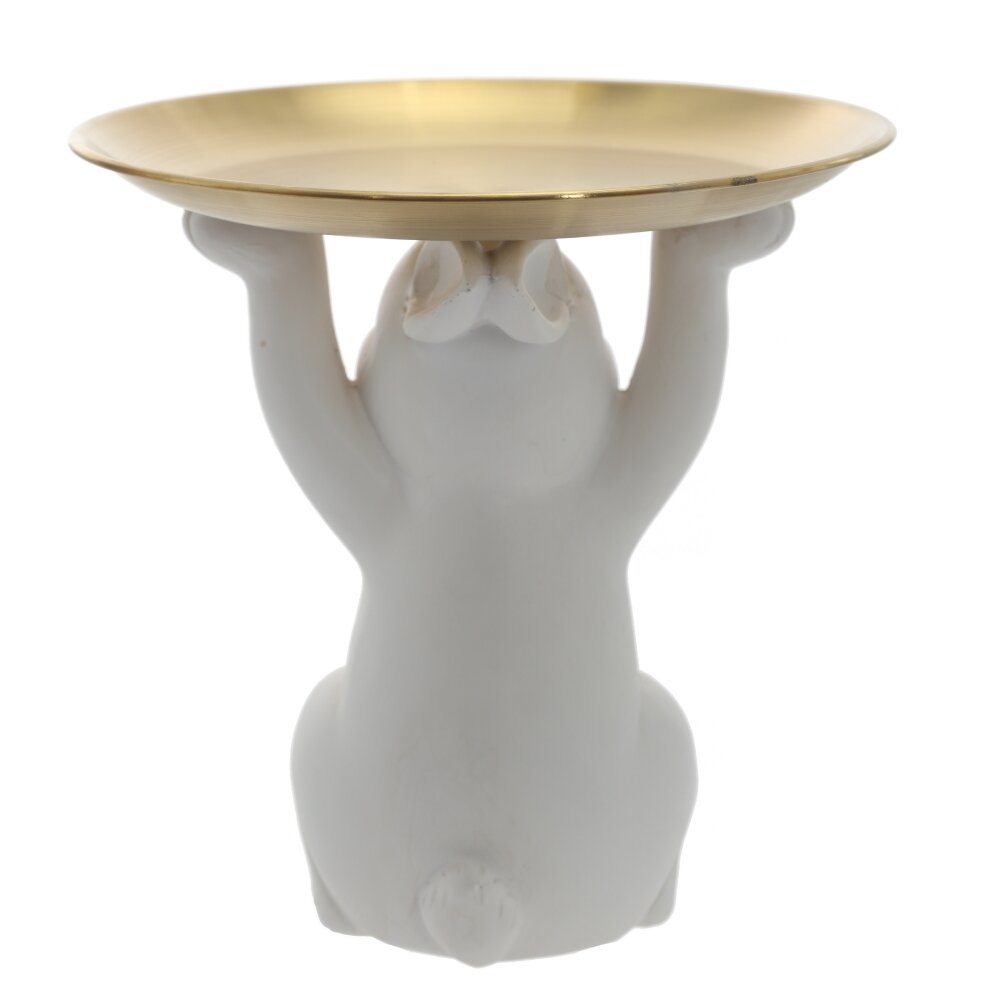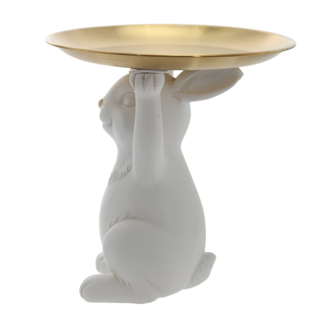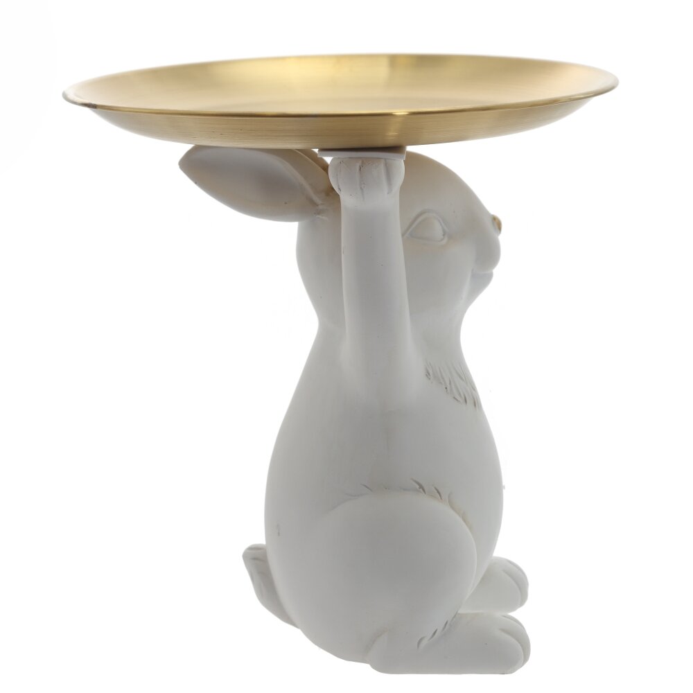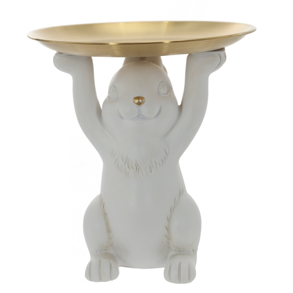 Фигурка Зайца выполнена из полимерных материалов и окрашена в белый цвет, что добавляет ей особую привлекательность. Главной деталью этой фигурки является подносик, который зайчик держит своими лапками. Фигурка станет идеальным украшением для вашего дома, добавляя милоты и умиротворения в переполненную суетой повседневность. Кроме того, она может стать прекрасным подарком для любителей фигурок, животных или просто тех, кто ценит чувство стиля и изящества.
