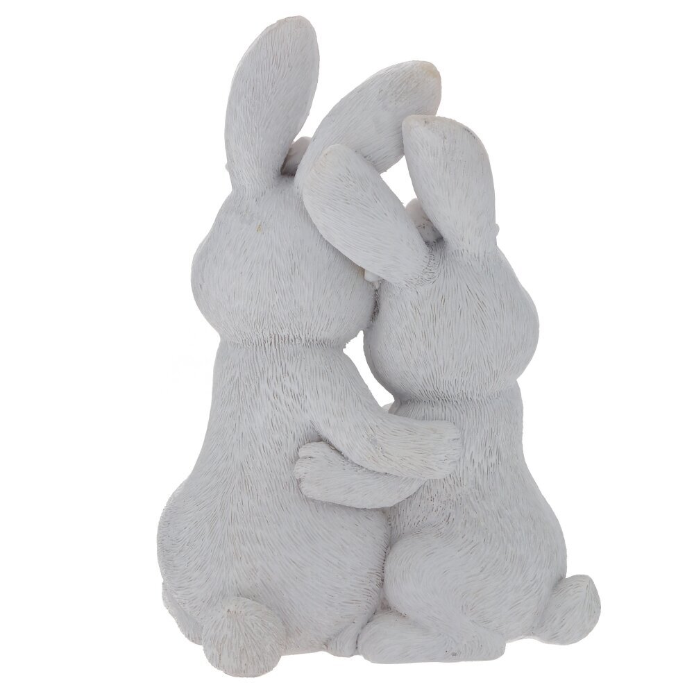 Декоративная фигурка "Зайцы" представляет собой очаровательную сценку, где два милых зайчика объятиями выражают свою нежность и любовь друг к другу. Головы зайчиков украшены милыми цветочками, которые придают им дополнительный шарм и очарование. Этот прекрасный аксессуар станет прекрасным украшением вашего дома.