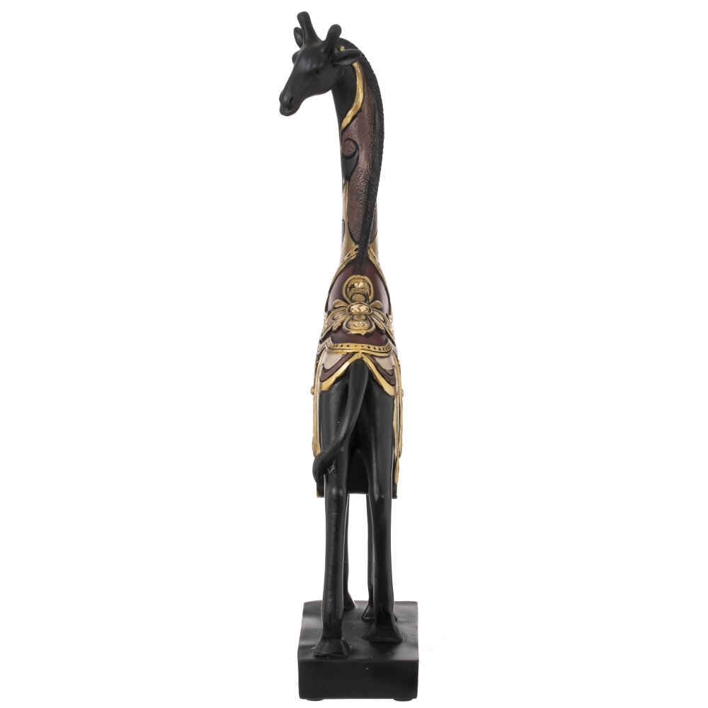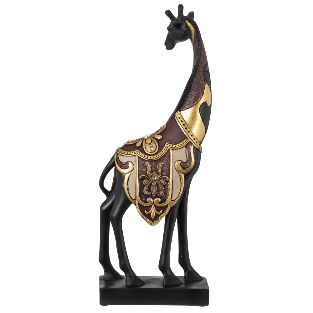Декоративная фигурка "Жираф" – элегантное украшение для вашего интерьера, выполненное из полимерных материалов. Его изящный дизайн сочетает в себе черный, золотой и коричневый оттенки с утонченными узорами, создавая роскошный и эксклюзивный внешний вид. Благодаря внимательной проработке деталей и высококачественному исполнению, фигурка станет прекрасным акцентом для любой комнаты, будь то гостиная, спальня или рабочий кабинет. Она прекрасно впишется в интерьер в классическом, восточном или современном стиле. Этот изысканный сувенир не только украсит ваш дом, но и станет отличным подарком для любителей красивых вещей.
