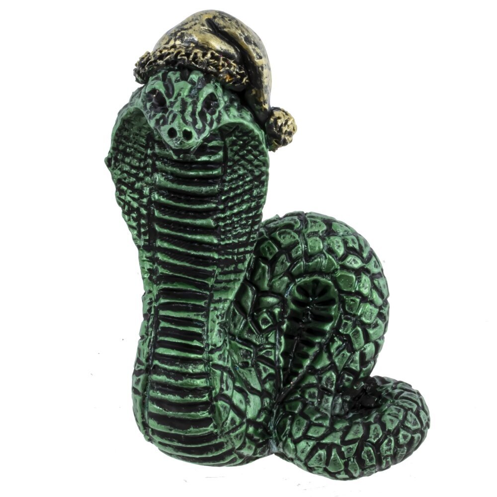 Декоративная фигурка "Змея" высотой 8 см изготовлена из полимерного материала и представляет собой оригинальный символ года. Эта уникальная змейка - кобра, свитая в кольца, украшена оранжевым (золотым) шарфиком или колпаком, в зависимости от выбранного варианта. Фигурка доступна в зеленом металлическом цвете, что придает ей особый шарм и привлекательность. Особое внимание уделено проработке фактуры змеиной кожи, что создает реалистичный эффект и придает изделию утонченность. Этот новогодний сувенир станет прекрасным украшением и символом удачи в предстоящем году.