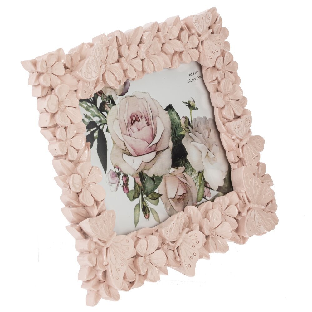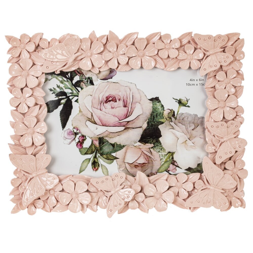 Элегантная фоторамка для фото 10*15 см станет прекрасным украшением вашего интерьера и поможет сохранить важные моменты на долгие годы. Выполненная из прочных полимерных материалов и дополненная стеклом, она обеспечивает надежную защиту фотографии от внешних воздействий. Декоративное оформление в виде объемных цветов и изящных бабочек придает рамке изысканный и романтичный вид. Светло-розовый оттенок гармонично впишется в интерьер в классическом или романтическом стиле. Идеально подходит для семейных снимков, свадебных фото или подарка близким.