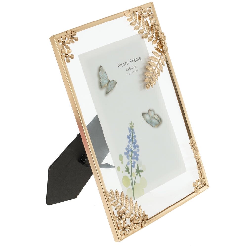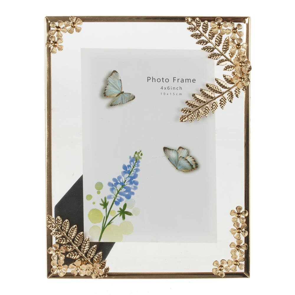Изящная фоторамка для фотографии формата 10?15 см станет утончённым акцентом в любом интерьере. Основа выполнена из прочного стекла, а тонкая окантовка из металла благородного золотистого оттенка придаёт изделию стильный, немного винтажный вид. Углы рамки украшены декоративными металлическими листьями и цветами с объёмной фактурой, которые красиво играют на свету и подчёркивают важность запечатлённого момента. Фоторамка гармонично впишется в классический, современный или романтичный интерьер, подойдёт для размещения семейных снимков, свадебных фотографий, детских портретов. Может стать оригинальным подарком на любой праздник или приятным дополнением к букету и сладостям.