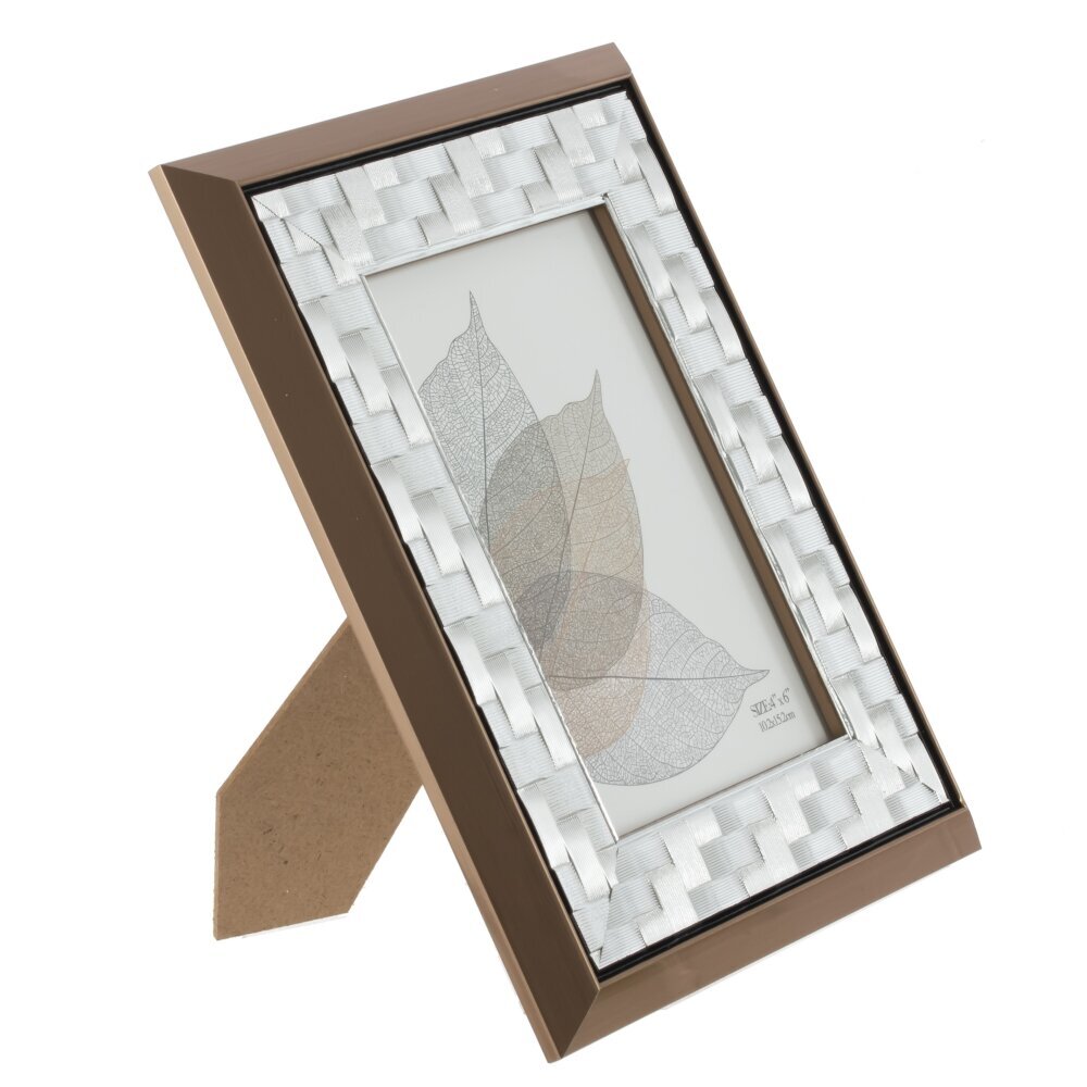 Элегантная фоторамка для фотографии формата 10?15 см. Основа выполнена из прочных полимерных материалов, лицевая часть — из прозрачного стекла, которое надежно защищает снимок от пыли, отпечатков и случайных царапин. Рамка оформлена в спокойном бежево?сером оттенке с выразительной фактурой под плетение и тонкой золотистой окантовкой по периметру, благодаря чему выглядит аккуратно и благородно. Скосы углов подчеркивают глубину, создавая эффект паспарту и красиво фокусируя внимание на изображении. Нейтральная цветовая гамма легко сочетается с классическим и современным интерьером — от гостиной и спальни до кабинета. Идеальна для семейных фотографий, детских портретов или памятных открыток, станет приятным и практичным подарком.