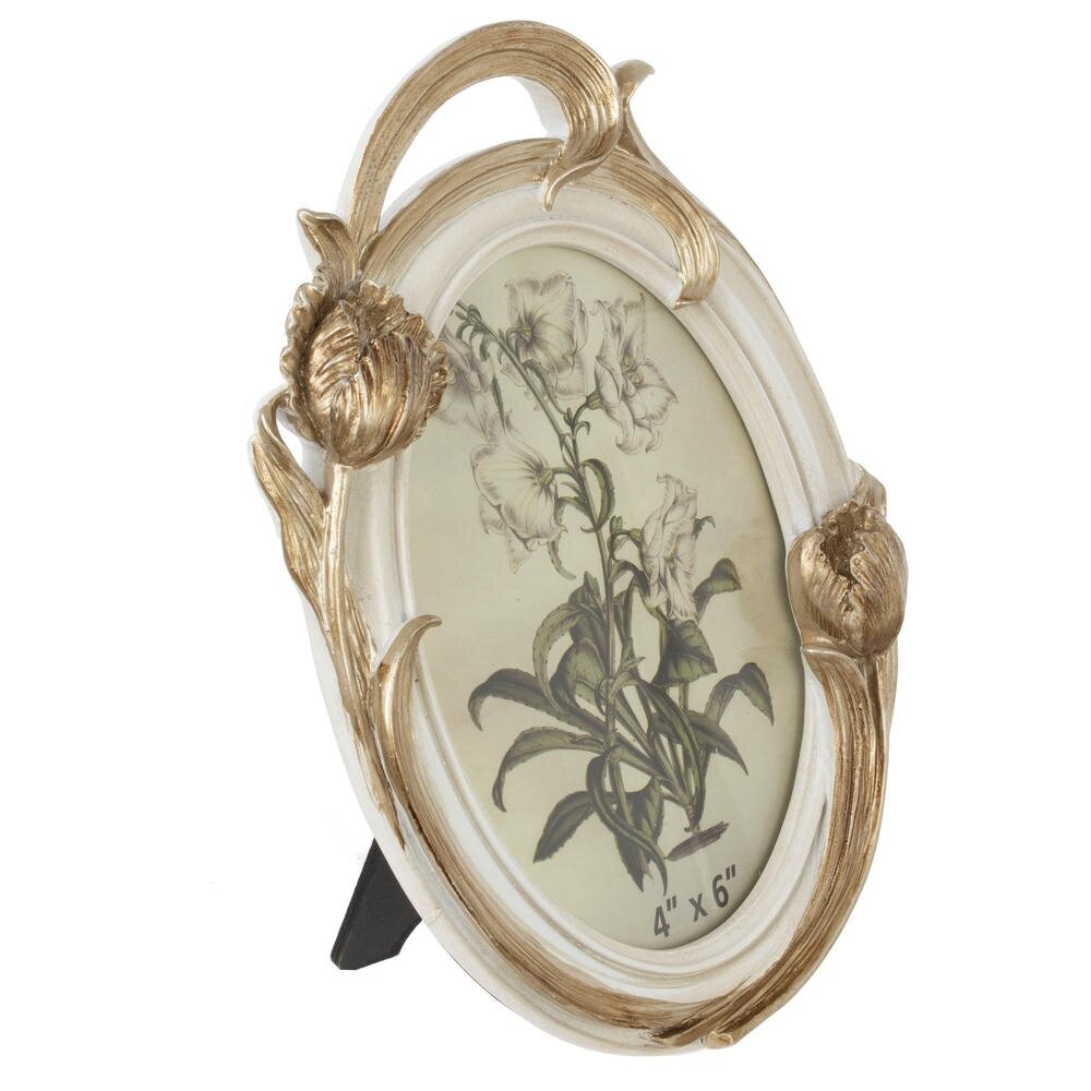 Элегантная овальная фоторамка для фото 10?15 см станет изысканным акцентом в интерьере гостиной, спальни или рабочего кабинета. Корпус выполнен из прочных полимерных материалов, что обеспечивает изделию небольшую массу и устойчивость к повреждениям. Вставка из прозрачного стекла надежно защищает фотографию от пыли и выгорания. Рамка оформлена рельефным растительным орнаментом с плавными линиями и золотистым покрытием, благодаря чему выглядит по?настоящему нарядно и благородно. Идеально подходит для семейных снимков, свадебных фотографий и памятных портретов, а также послужит хорошим подарком к любому торжеству.