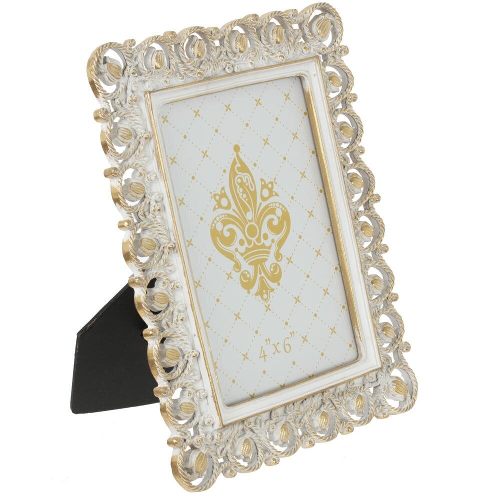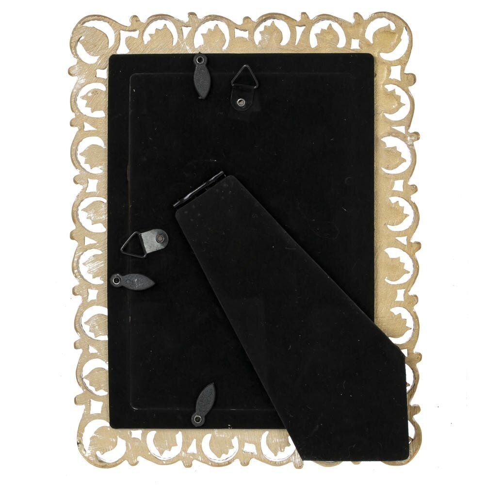Элегантная фоторамка для снимков формата 10?15 см станет выразительным акцентом в интерьере гостиной, спальни или кабинета. Основание выполнено из прочных полимерных материалов, обрамление украшено объемным ажурным орнаментом с изысканными завитками и декоративными элементами под золото, что придаёт изделию винтажный, слегка дворцовый характер. Лицевая часть закрыта прозрачным стеклом, надежно защищающим фотографию от пыли и случайных повреждений, сохраняя яркость красок на долгие годы. Фоторамка гармонично смотрится как отдельно, так и в композиции с другими рамками, подойдет для семейных фото, детских портретов или памятных открыток и станет приятным подарком к любому торжеству.