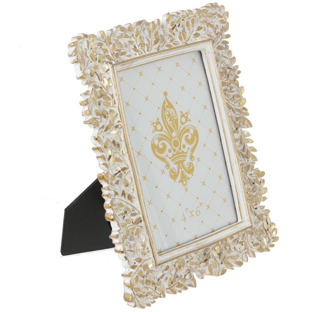 Элегантная фоторамка для фото 10?15 см станет эффектным акцентом в интерьере. Оригинальное обрамление выполнено из прочных полимерных материалов в виде ажурного растительного орнамента с сочетанием белого и золотистого оттенков, что придаёт изделию винтажный и нарядный вид. Лицевая часть защищена прозрачным стеклом, которое надежно сохраняет фотографию от пыли и повреждений. Рамка идеально подойдёт для семейных снимков, портретов и станет прекрасным подарком к любому торжеству.