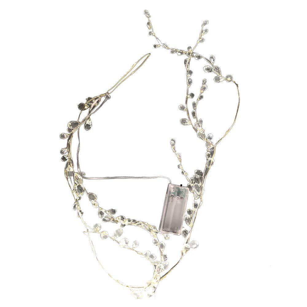 Чудесная гирлянда, словно хрустальное ожерелье. Изделие смотрится изящно, нежно и романтично, восхищая своим мягким благородством. Имеет подсветку, работает от 2-х батареек АА. Это отличная возможность разместить гирлянду, там, где пожелаете, даже вдали от электрических розеток.
