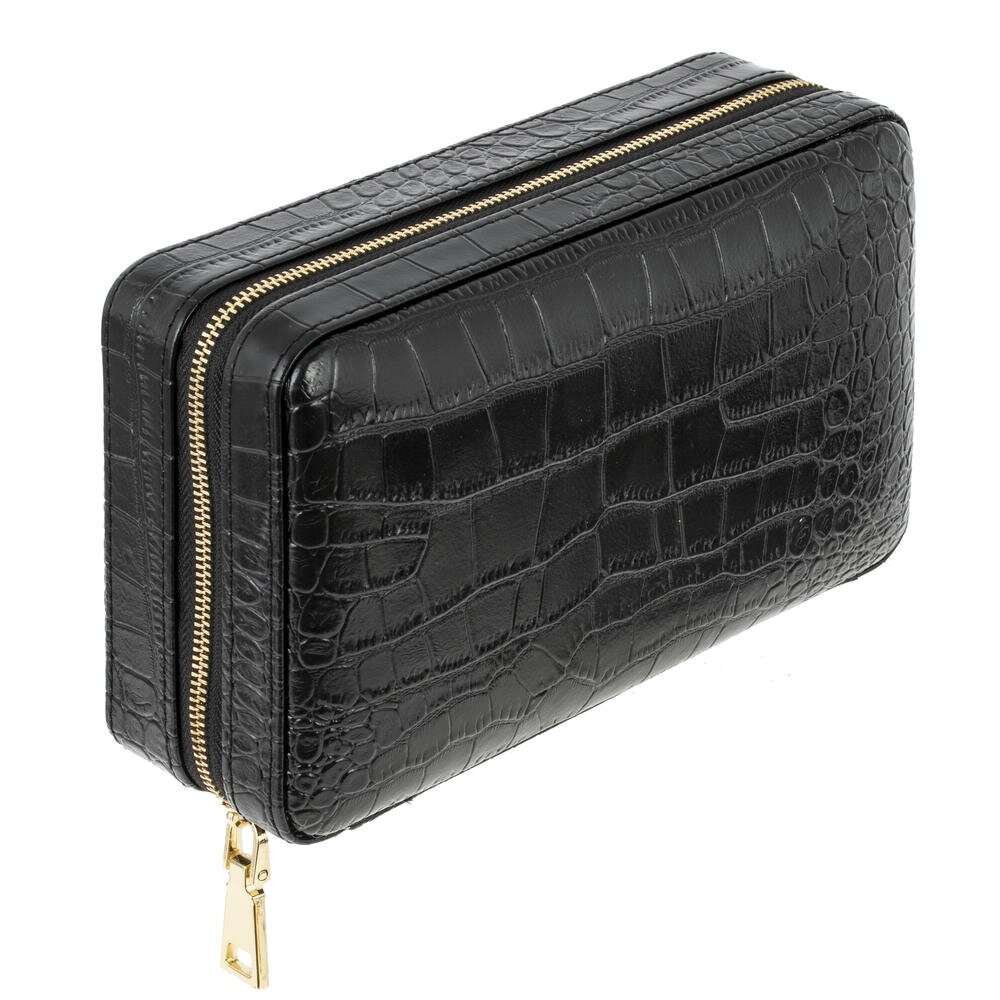 Элегантный хьюмидор размером 13 ? 20,5 ? 7,5 см — незаменимая вещь для ценителей сигар. Выполнен из высококачественных полимерных материалов с имитацией текстуры крокодиловой кожи, дополнен металлическими элементами фурнитуры, которые придают изделию роскошный вид. Внутри — отделка из натурального дерева, обеспечивающая оптимальные условия для хранения сигар: поддерживает нужный уровень влажности и защищает табак от пересыхания.