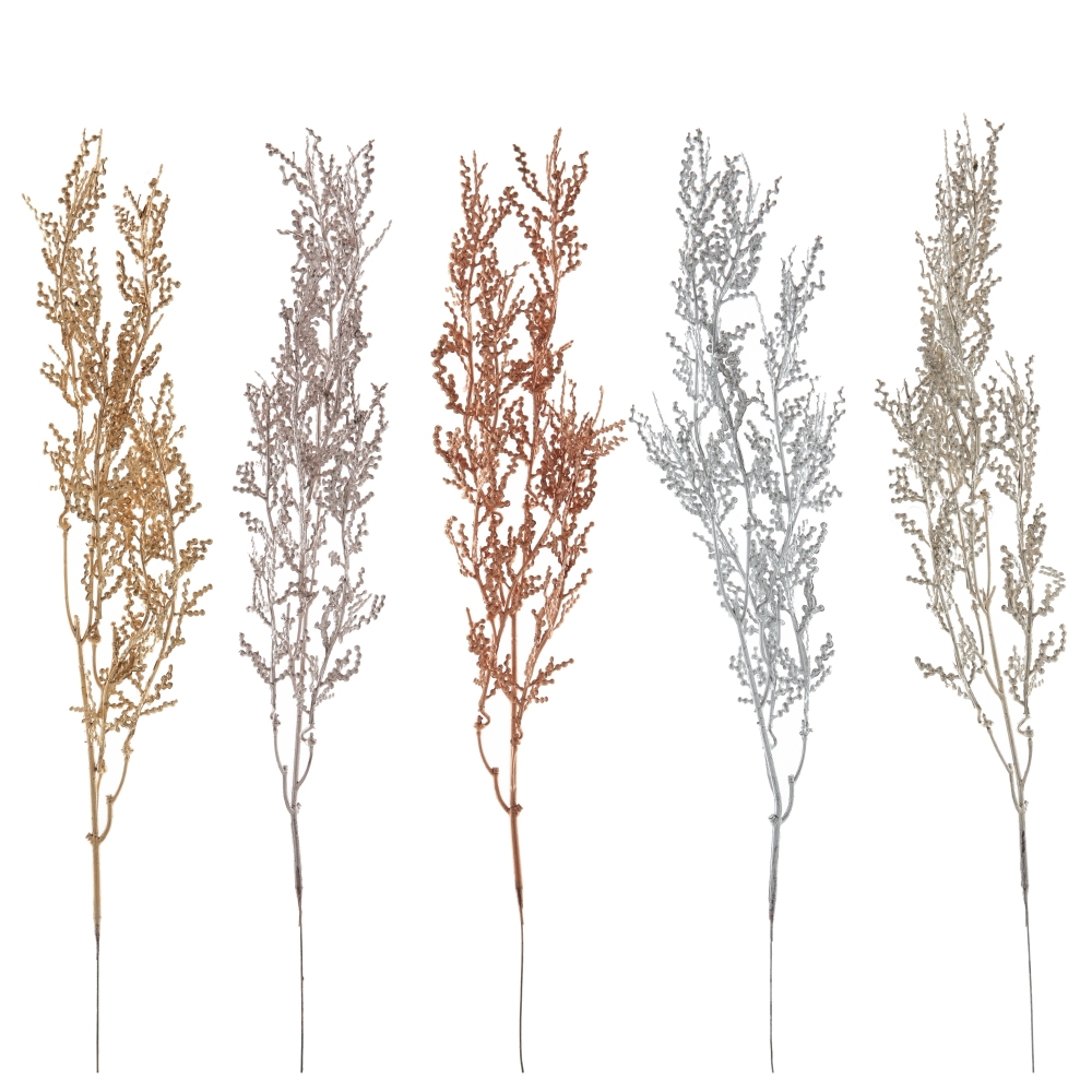 Великолепная ветка для изысканных и оригинальных композиций. Изделие мерцает при искусственном освещении и прекрасно подойдет для оформления новогодних венков, подсвечников, а так же как украшение для елки. Представлена в пяти вариантах.