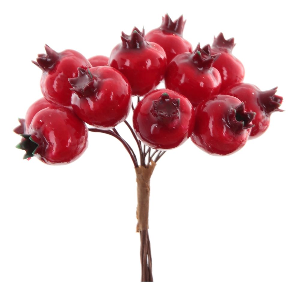 Ягодки декоративные на проволоке. Они замечательно подойдут для украшения упаковки, оформления новогодних венков, гирлянд и других зимних композиций. Прекрасно будут смотреться в оформлении открыток или подарков. Ягоды имеют глянцевую поверхность. Длинный проволочный стебелек позволит без труда их прикрепить.