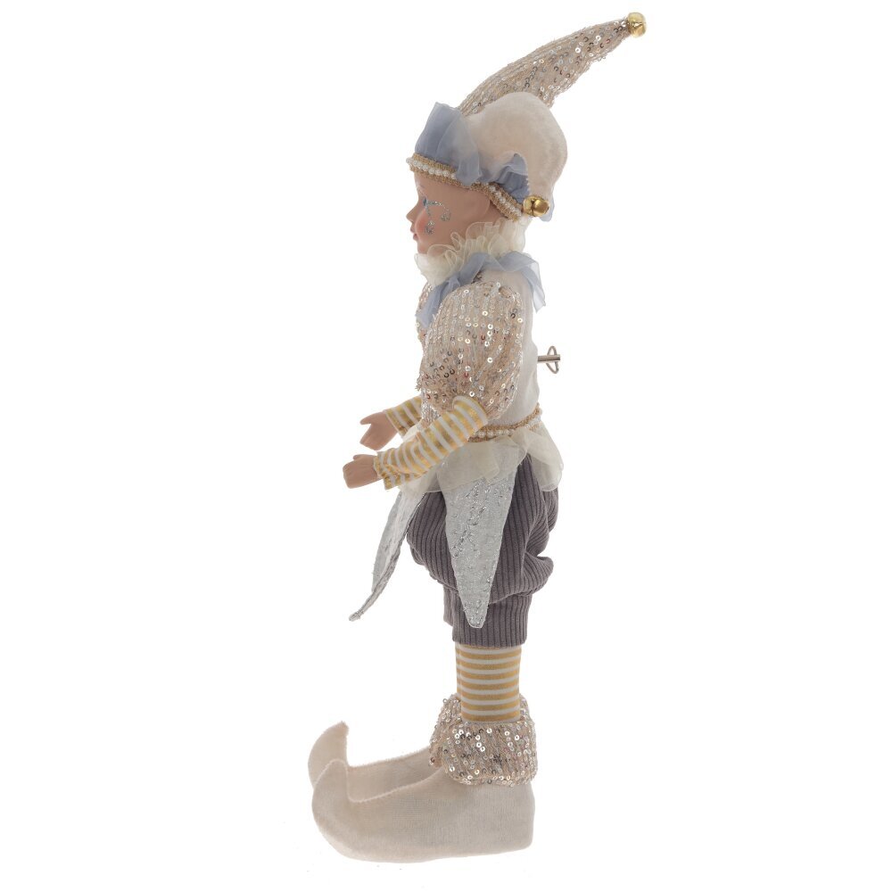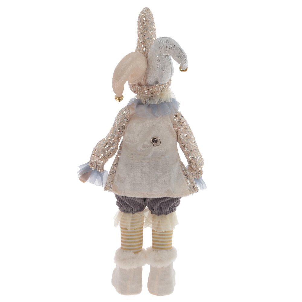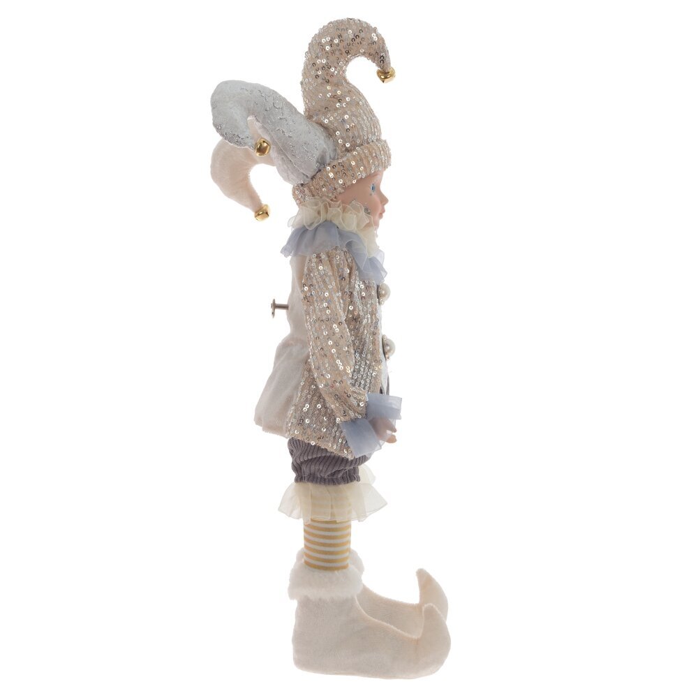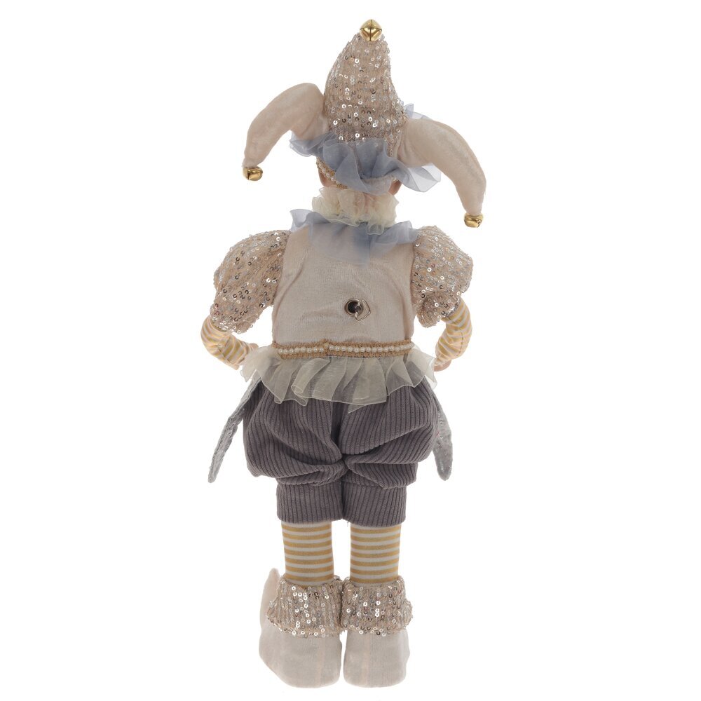 Игрушка набивная с музыкальным и движущимся механизмом "Клоун" — это восхитительная декоративная кукла, которая станет незаменимым акцентом на любом празднике. Лицо и кисти рук выполнены из фарфора, что придаёт ей неповторимую элегантность и утонченность. Костюм клоуна выполнен в роскошных сер-золотых оттенках, которые эффектно переливаются на свету. Шутовской колпак придает образу веселья. Благодаря проволоке, встроенной в руки, клоун может делать забавные жесты, что добавляет игривости в атмосферу праздника. На спине куклы расположен заводной ключик, который активирует новогоднюю мелодию, под которую клоун плавно кивает головой. Эта яркая игрушка не только станет прекрасным подарком для близких, но и замечательным элементом интерьера. Представлен в двух вариантах.