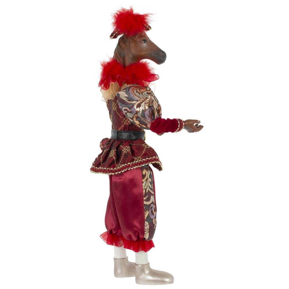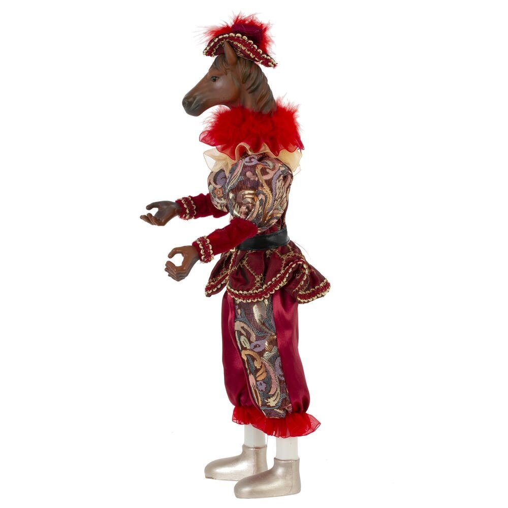 Рабивная игрушка "Лошадь" в придворном костюме — изящный и необычный элемент новогоднего или интерьерного декора. Мягкая фигурка лошади выполнена с особым вниманием к деталям: роскошный костюм из блестящей ткани придаёт образу торжественность и сказочность. Игрушка создаёт атмосферу уюта и волшебства, отлично смотрится под ёлкой, на полке или в композиции с другими праздничными аксессуарами. Благодаря удобной петельке, изделие можно подвесить , например, на ёлку.Подойдёт как украшение, сувенир или оригинальный подарок.Стоит отметить, что голова игрушки выполнена из пластмассы, что делает изделие более легким, чем другие полимерные материалы.