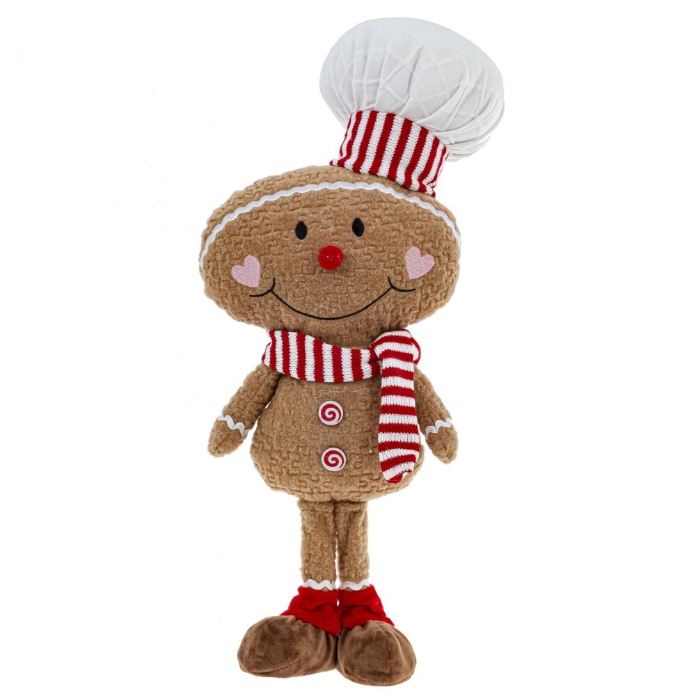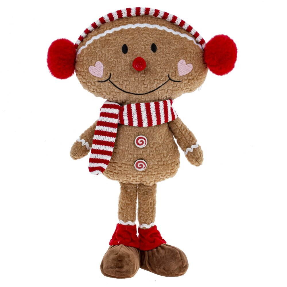 В комплекте представлены два варианта. Первый пряничный человечек - Девочка, носит красно-белый полосатый шарф, красные наушники и теплые сапожки, а второй - Мальчик, носит такой же шарф и сапожки, однако, у него есть еще и белая поварская шапочка на голове, что делает его особенно милым и кулинарно-тематическим. Розовые сердечки на щеках и красный нос добавляют игрушкам особенный шарм.