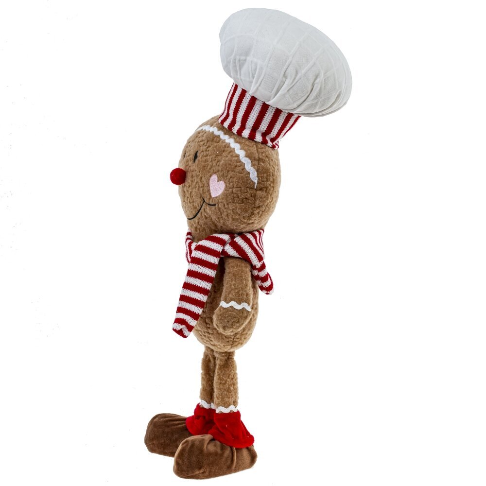 В комплекте представлены два варианта. Первый пряничный человечек - Девочка, носит красно-белый полосатый шарф, красные наушники и теплые сапожки, а второй - Мальчик, носит такой же шарф и сапожки, однако, у него есть еще и белая поварская шапочка на голове, что делает его особенно милым и кулинарно-тематическим. Розовые сердечки на щеках и красный нос добавляют игрушкам особенный шарм.