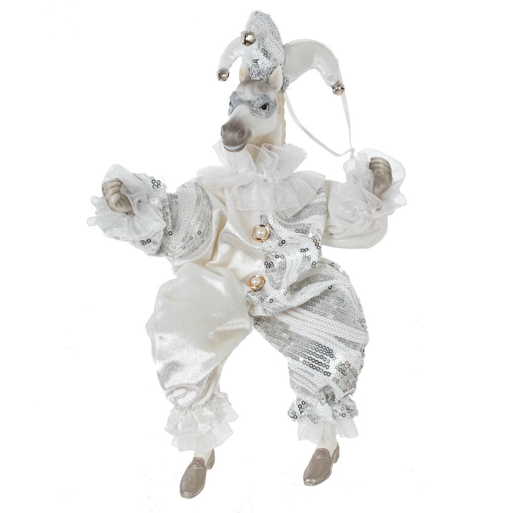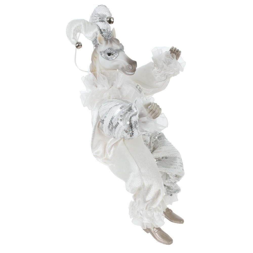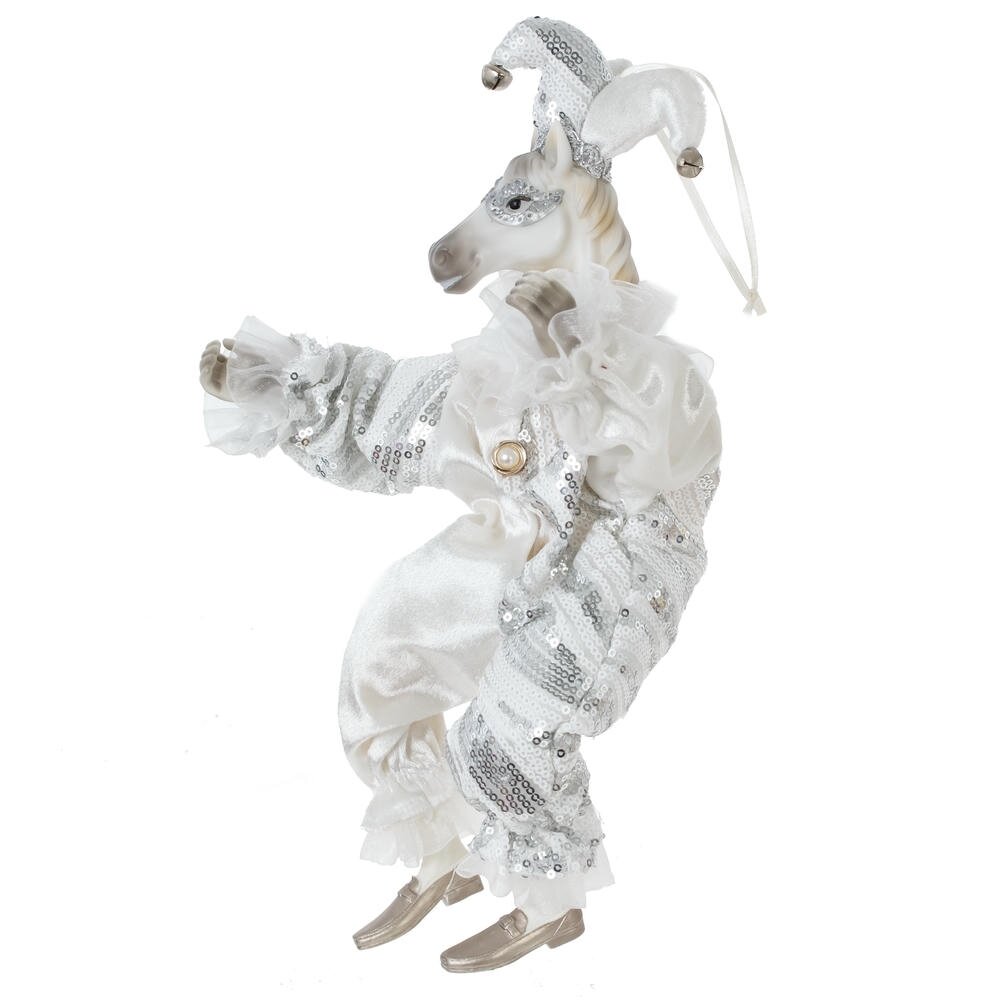 Набивная игрушка с подвесом "Лошадь" в костюме клоуна — изящный и необычный элемент новогоднего или интерьерного декора. Мягкая фигурка лошади выполнена с особым вниманием к деталям: роскошный костюм из блестящей ткани придаёт образу торжественность и сказочность. Игрушка создаёт атмосферу уюта и волшебства, отлично смотрится под ёлкой, на полке или в композиции с другими праздничными аксессуарами. Благодаря удобной петельке, изделие можно подвесить , например, на ёлку.Подойдёт как украшение, сувенир или оригинальный подарок.Стоит отметить, что голова игрушки выполнена из пластмассы, что делает изделие более легким, чем другие полимерные материалы.