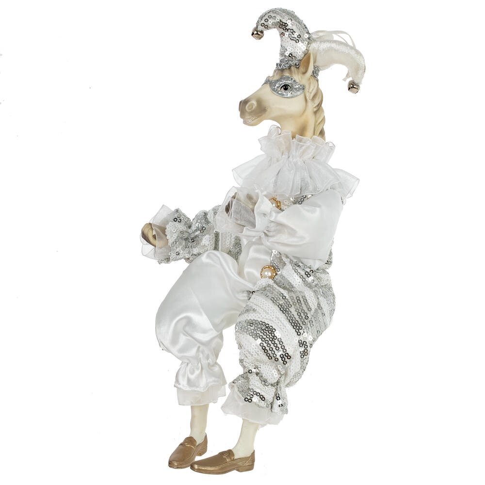Набивная игрушка с подвесом "Лошадь" в костюме клоуна — изящный и необычный элемент новогоднего или интерьерного декора. Мягкая фигурка лошади выполнена с особым вниманием к деталям: роскошный костюм из блестящей ткани придаёт образу торжественность и сказочность. Игрушка создаёт атмосферу уюта и волшебства, отлично смотрится под ёлкой, на полке или в композиции с другими праздничными аксессуарами. Благодаря удобной петельке, изделие можно подвесить , например, на ёлку.Подойдёт как украшение, сувенир или оригинальный подарок.Стоит отметить, что голова игрушки выполнена из пластмассы, что делает изделие более легким, чем другие полимерные материалы.