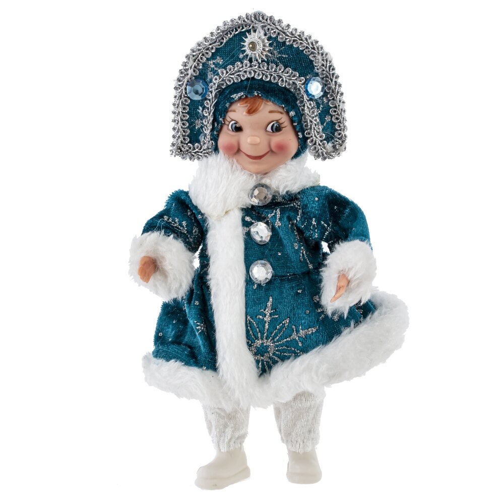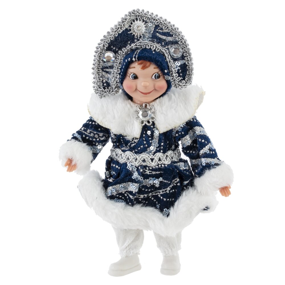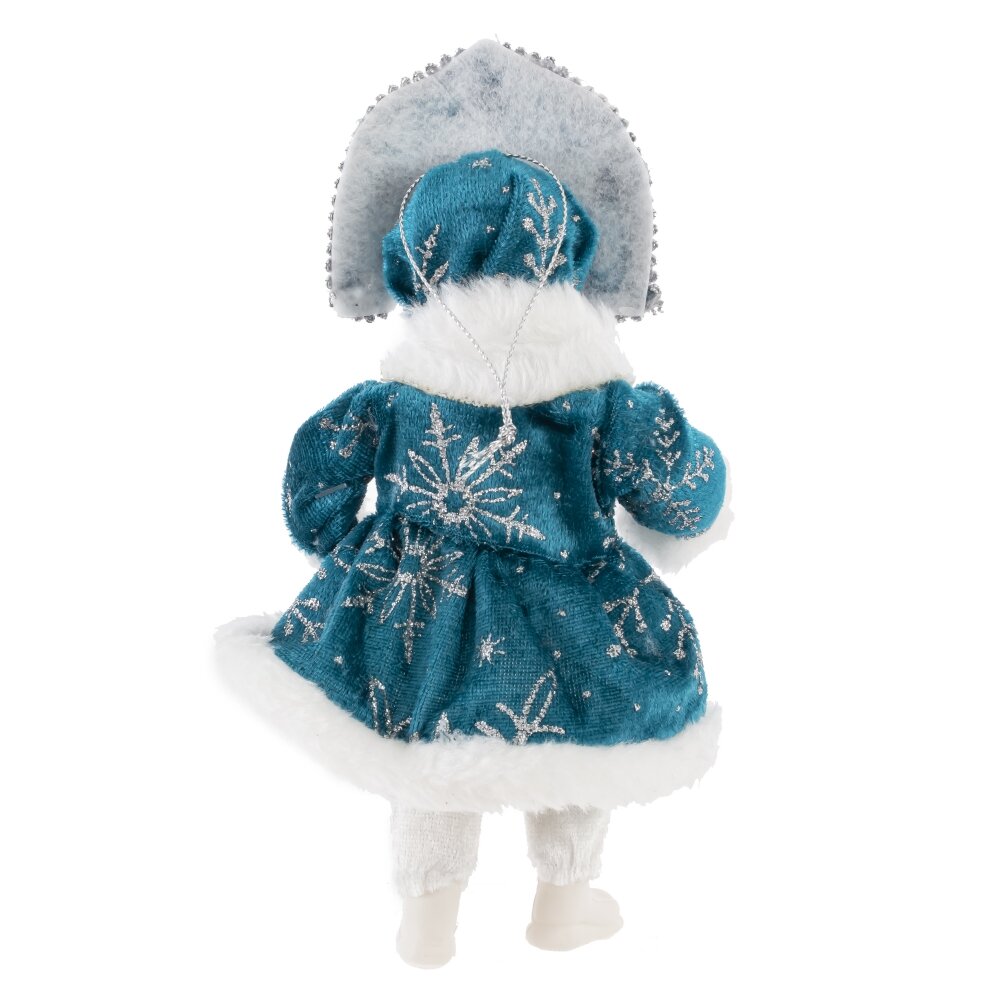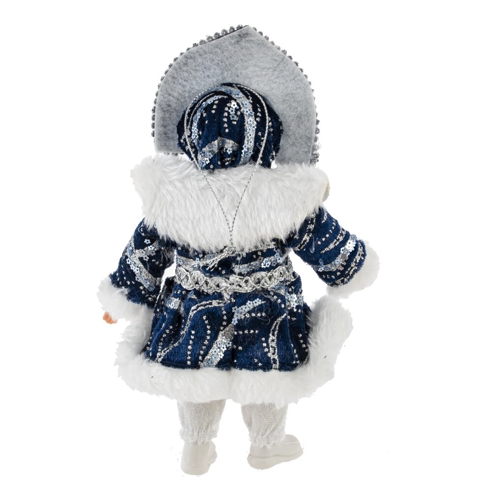 Набивная игрушка "Снегурочка в синем наряде" — это новогоднее украшение, выполненное из качественных текстильных материалов. Образ Снегурочки воплощён в традиционном стиле: она одета в сине-белый костюм с меховой отделкой, украшенный блестящими декоративными элементами, подчёркивающими праздничное настроение. Игрушка имеет мягкий корпус, приятный на ощупь, с аккуратно выполненным лицом и заплетённой косичкой, что придаёт образу выразительность и обаяние. Такая Снегурочка станет не только украшением новогоднего интерьера или ёлки, но и уютным символом зимнего волшебства, особенно любимым детьми.
