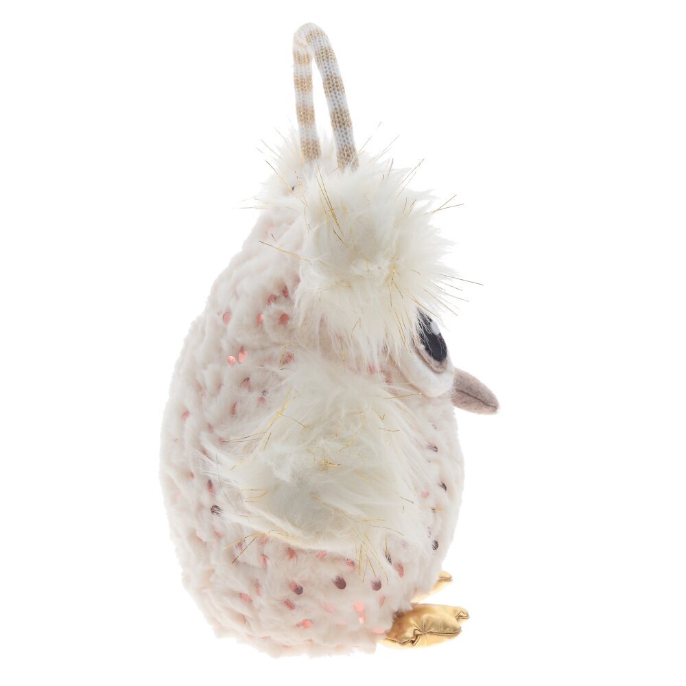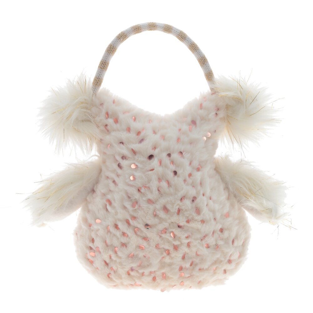 Игрушка набивная "Сова" - забавная мягкая и пушистая сова в теплом молочном оттенке с вкраплениями золота. Большие круглые глаза и клюв выполнены из фетра, а пушистые меховые крылышки придают игрушке очаровательный вид. Смешные наушники не только добавляют оригинальности, но и являются удобной ручкой для переноса игрушки.