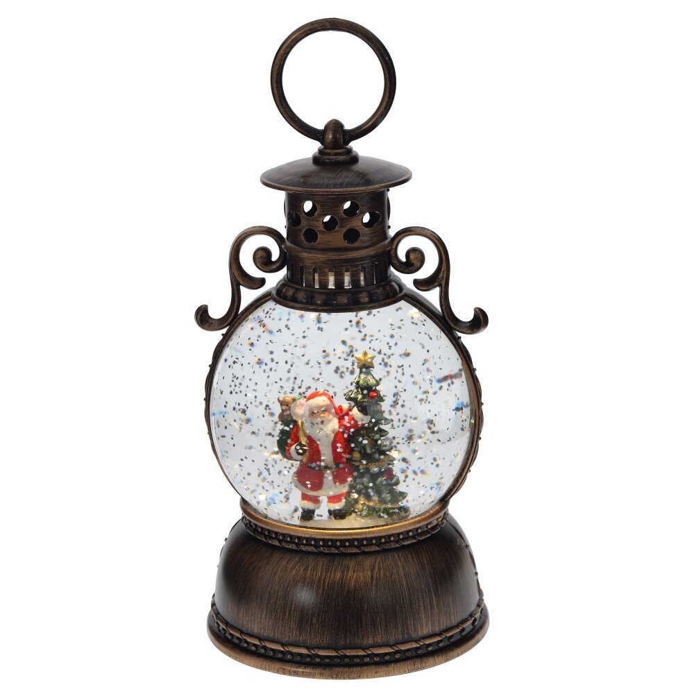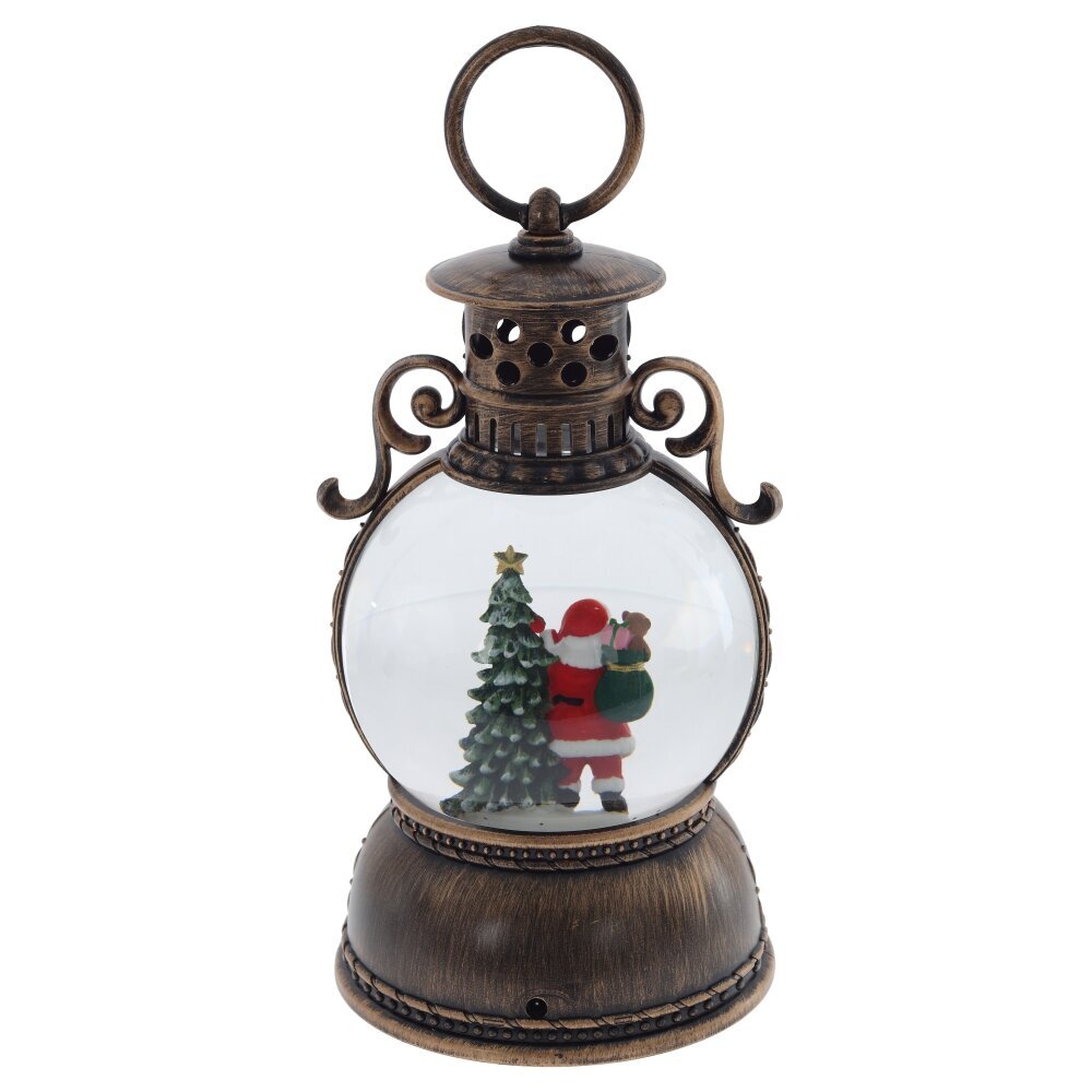 Изделие в виде Фонаря - замечательное праздничное украшение, которое хочется долго рассматривать и держать в руках. При включении поднимается искусственный снег и шар внутри словно оживает. Безупречная форма, изысканный дизайн, качественное исполнение. Этот уникальный подарок приносит с собой уют и теплые воспоминания о детстве. Отлично подойдет взрослым и порадует малышей. Работает от трех батареек ААА (не прилагаются). Внимание: при длительном нахождении в минусовой температуре возможно образование льда, который сместит фигурки и повредит шар. Наличие воздушной прослойки внутри водяного шара является технической необходимостью производства.