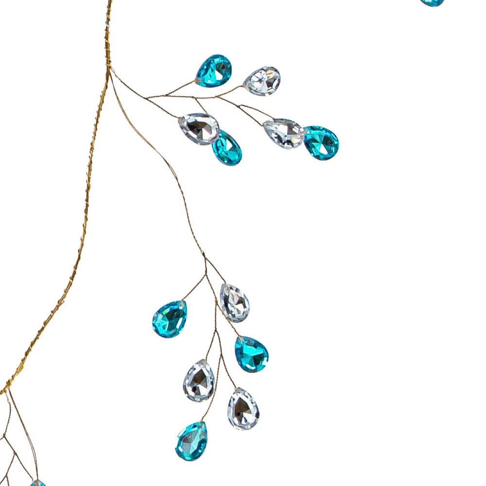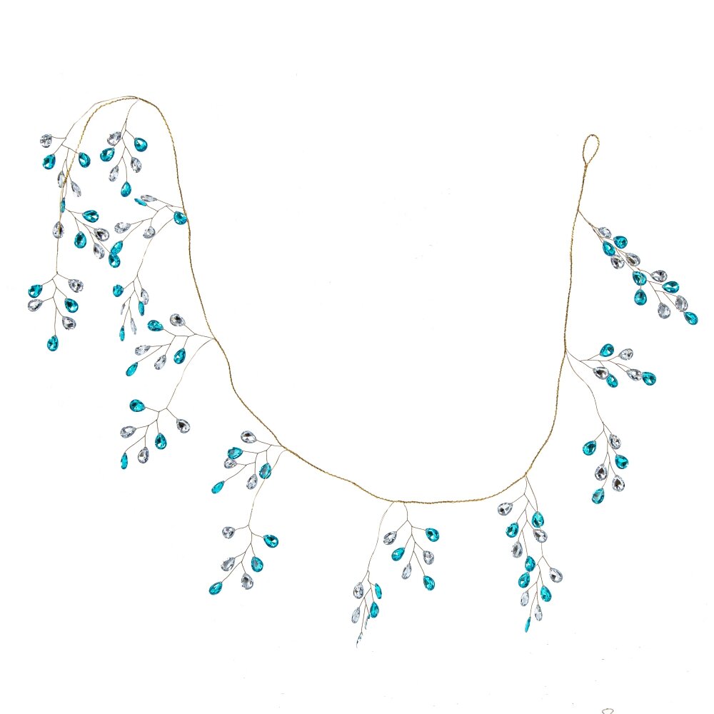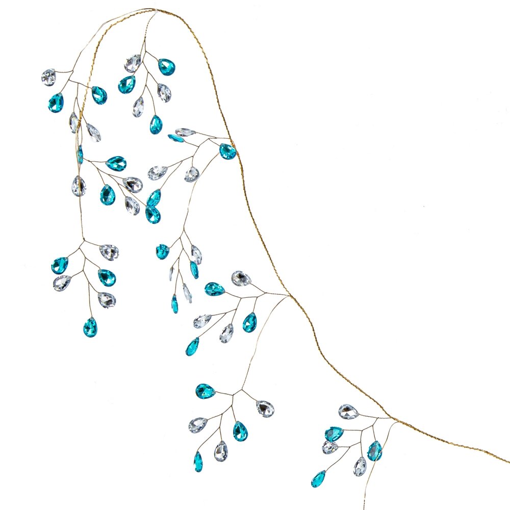 Декоративная "Гирлянда" - это великолепное украшение, где золотистая проволока длинною 131 см увенчанна нежными веточками, украшенными каплевидными стразами в оттенках голубого топаза и белого хрусталя. Этот роскошный аксессуар исключительно изыскан и элегантен. Такая гирлянда не только выглядит дорого и изысканно, но и создает неповторимую атмосферу праздника, наполняя пространство волшебством и блеском. Ее кристальные мерцающие листья оставляют в сердцах яркие и незабываемые впечатления.
