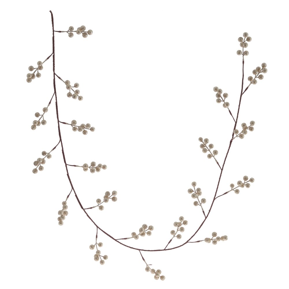 Декоративная гирлянда «Рождественская» - это изысканное украшение, которое может стать ярким акцентом в вашем интерьере. Гибкая ветка длиной 167 см оформлена золотыми ягодами из пенопласта, придавая ей праздничное великолепие. Это изделие универсально и подойдет для любых интерьерных концепций. Создайте уютное и волшебное новогоднее настроение в своем доме с помощью этой элегантной гирлянды.