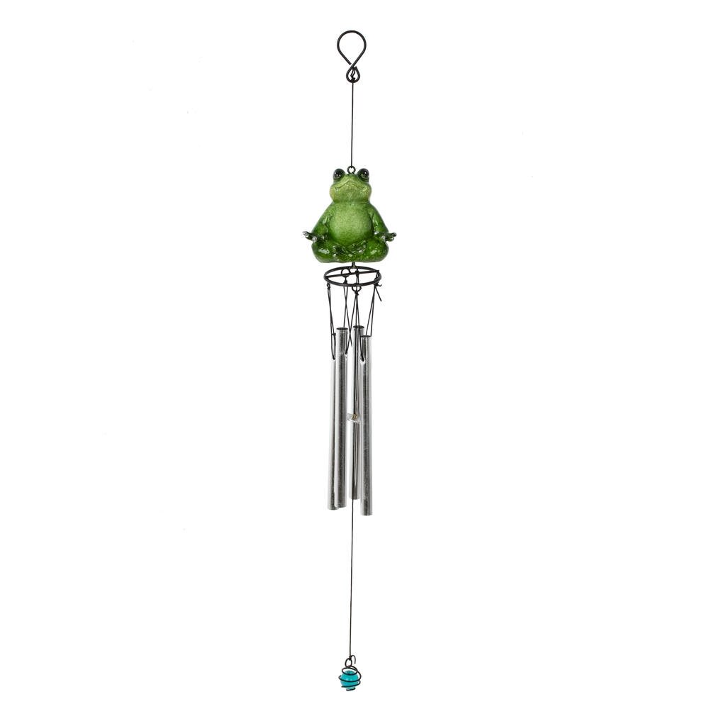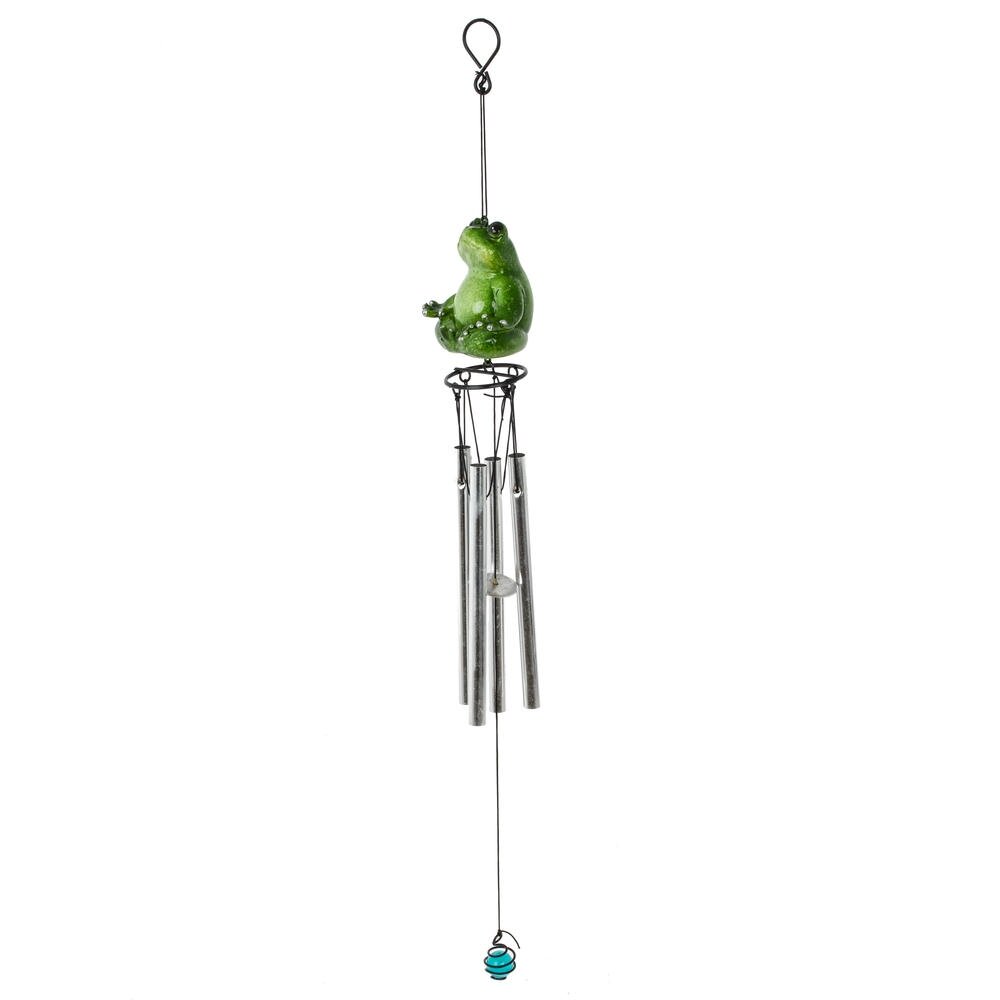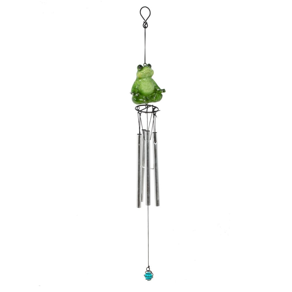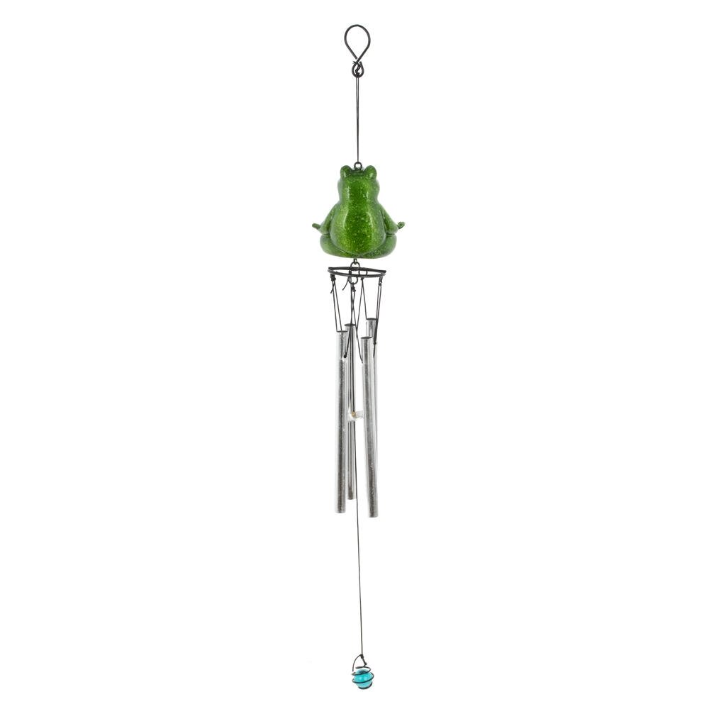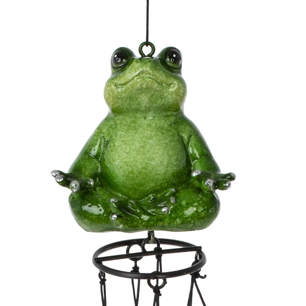 Изделие декоративное «Музыка ветра» – оригинальное украшение для дома, балкона или сада. Верхняя часть композиции выполнена в виде забавной зелёной лягушки, сидящей в расслабленной позе, что придаёт аксессуару игривое и одновременно умиротворяющее настроение. К подвесу крепятся несколько металлических трубочек-колокольчиков, которые издают мягкий мелодичный звон при малейшем дуновении ветра. Нижний утяжелитель в виде миниатюрного шарика помогает конструкции свободно колыхаться и усиливает звучание. Такая «Музыка ветра» создаёт атмосферу уюта и гармонии, отлично подходит в качестве подарка любителям необычного декора и станет ярким акцентом в любом интерьере или на открытой террасе.