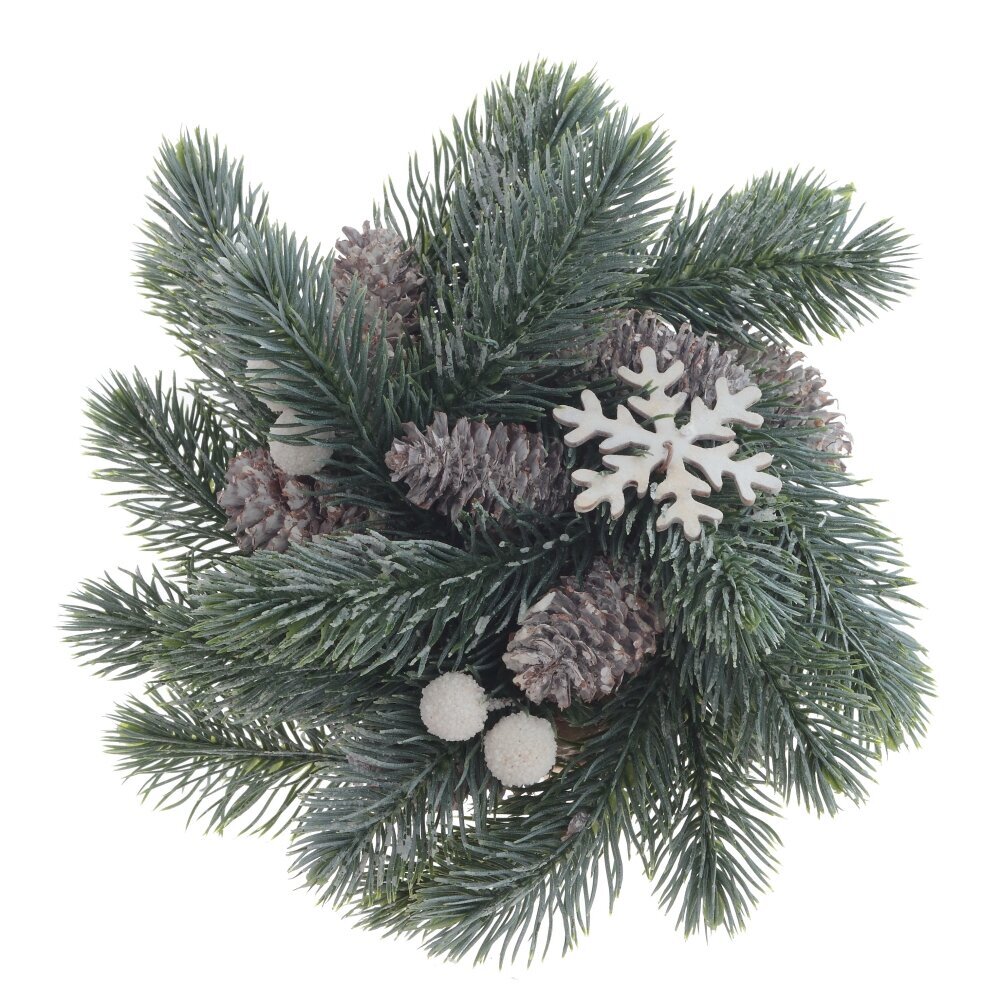 "Новогодняя композиция" - декоративное изделие, представляющее новогоднюю экибану в кашпо. В ней сочетаются искусственные зеленые хвойные ветки с натуральными шишками и белыми украшениями-ягодками. Кашпо обмотано джутовой веревкой, добавляя нотку природности. Это прекрасное дополнение к новогоднему интерьеру, приносящее в него атмосферу праздника и уюта.