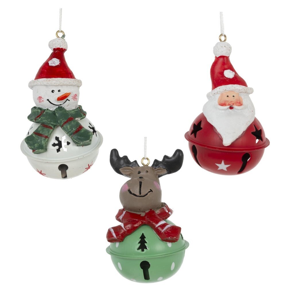 Декоративное подвесное изделие в виде металлического бубенчика — это оригинальное новогоднее украшение, которое сочетает в себе традиционный звук праздника и яркий визуальный образ. Представлено в трёх вариантах: белый бубенчик в форме снеговика, красный — в виде Деда Мороза и зелёный — в образе оленя. Каждый из них украшен милыми деталями, передающими характер персонажа, а также прочной петелькой для подвешивания. Благодаря своему объёму и металлической фактуре, бубенчики красиво звенят при движении и оживляют интерьер. Такие подвески прекрасно смотрятся на ёлке, в гирляндах или новогодних композициях, добавляя уюта, веселья и праздничного настроения.