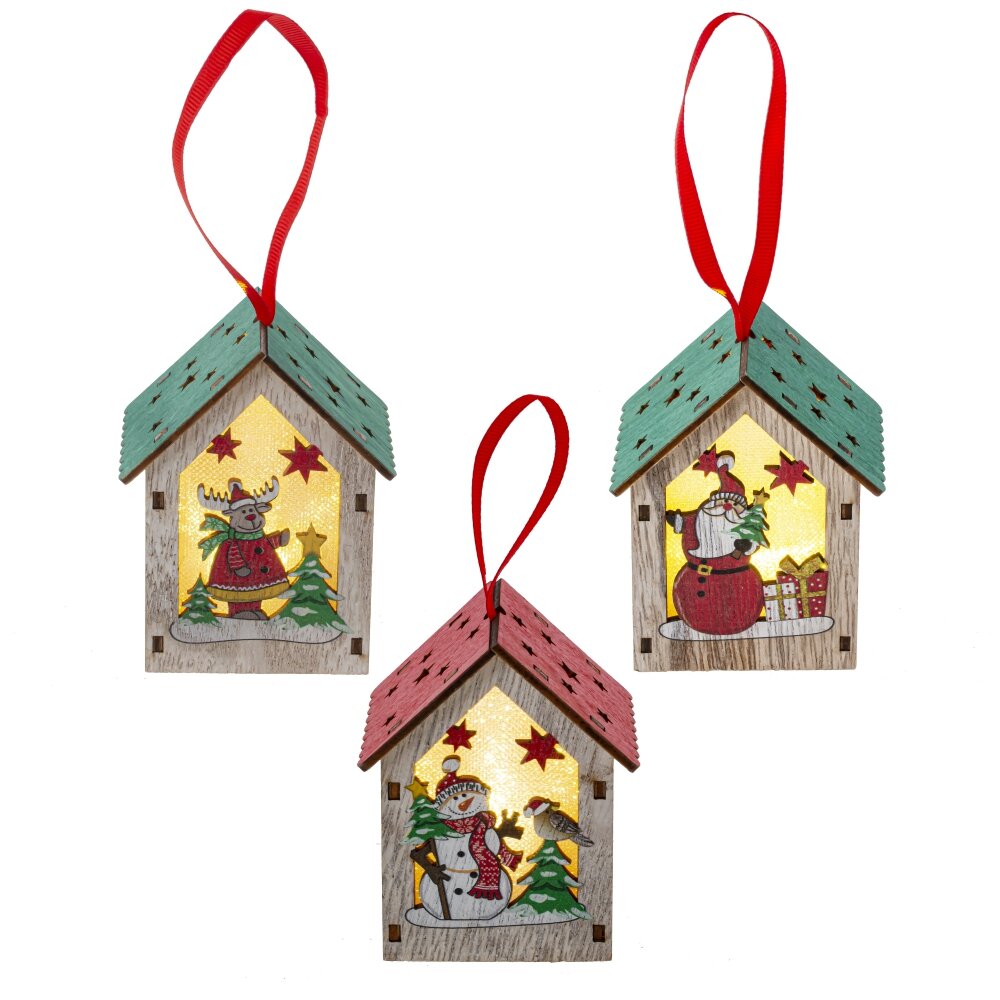 Декоративное изделие с подсветкой "Домик" — это оригинальное подвесное украшение, выполненное в виде стильного деревянного домика, которое станет изюминкой вашего новогоднего декора. Это изделие доступно в трех вариантах, каждый из которых отличается уникальным дизайном, посвященным рождественским мотивам. Для работы подсветки требуется три батарейки типа LR1130, которые входят в комплект. Декоративные домики с подсветкой — это отличное решение для оформления вашего интерьера в зимний сезон и создания уюта в любой комнате.