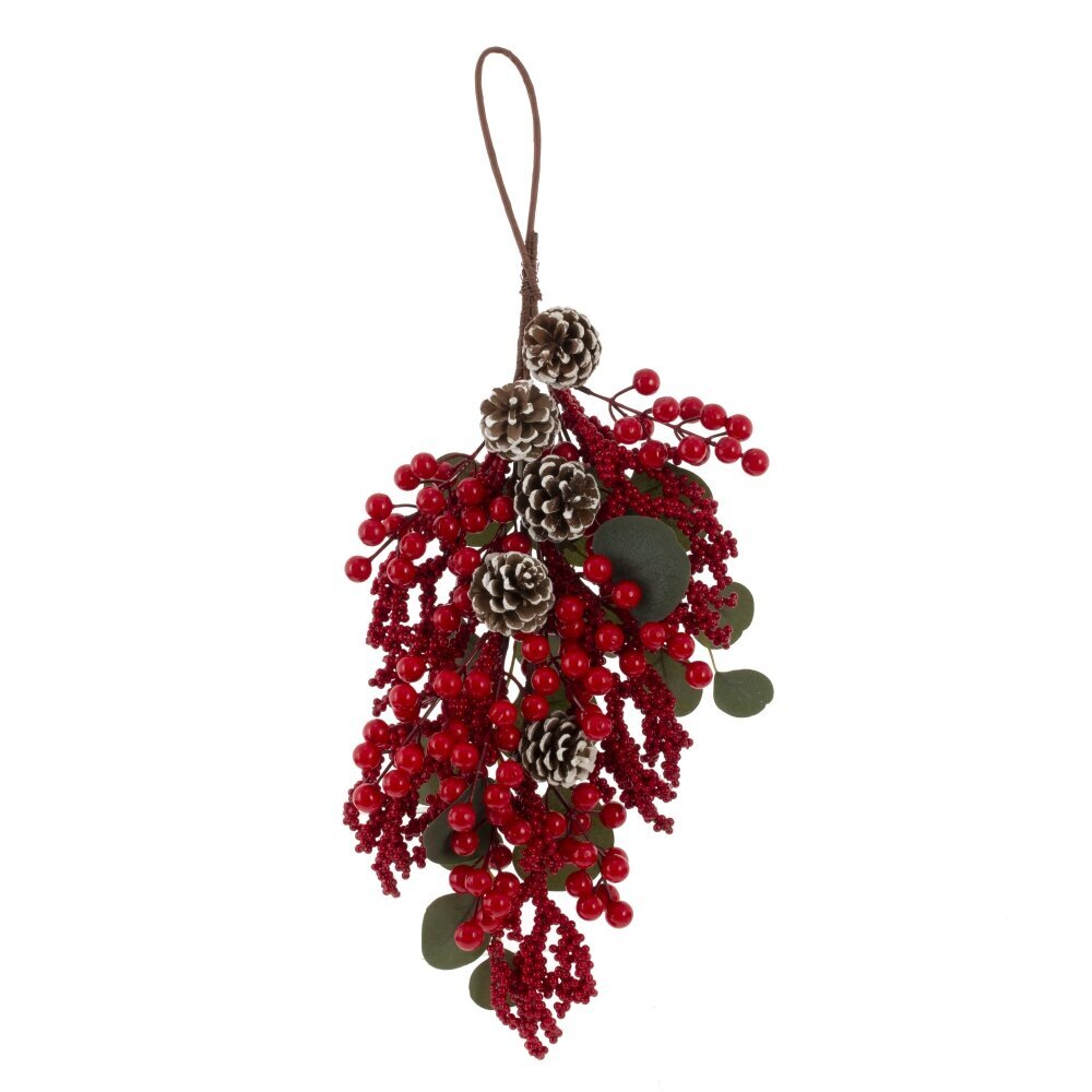 Это декоративное изделие в виде ветки станет оригинальным акцентом в интерьере или праздничном оформлении. Ветка искусно декорирована реалистичными красными ягодами, придающими ей яркий и нарядный вид. Благодаря подвесу в виде петли, ветку легко разместить на двери, стене, каминной полке или использовать как часть новогодней композиции. Такой элемент декора добавит уюта и теплоты в любое пространство, создавая атмосферу праздника. Материалы изделия устойчивы к выцветанию и деформации, что делает его многоразовым и долговечным.