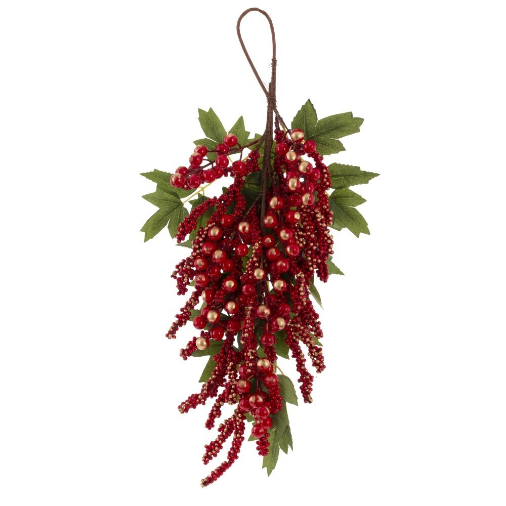 Это декоративное изделие в виде ветки станет оригинальным акцентом в интерьере или праздничном оформлении. Ветка искусно декорирована реалистичными красными ягодами, придающими ей яркий и нарядный вид. Благодаря подвесу в виде петли, ветку легко разместить на двери, стене, каминной полке или использовать как часть новогодней композиции. Такой элемент декора добавит уюта и теплоты в любое пространство, создавая атмосферу праздника. Материалы изделия устойчивы к выцветанию и деформации, что делает его многоразовым и долговечным.