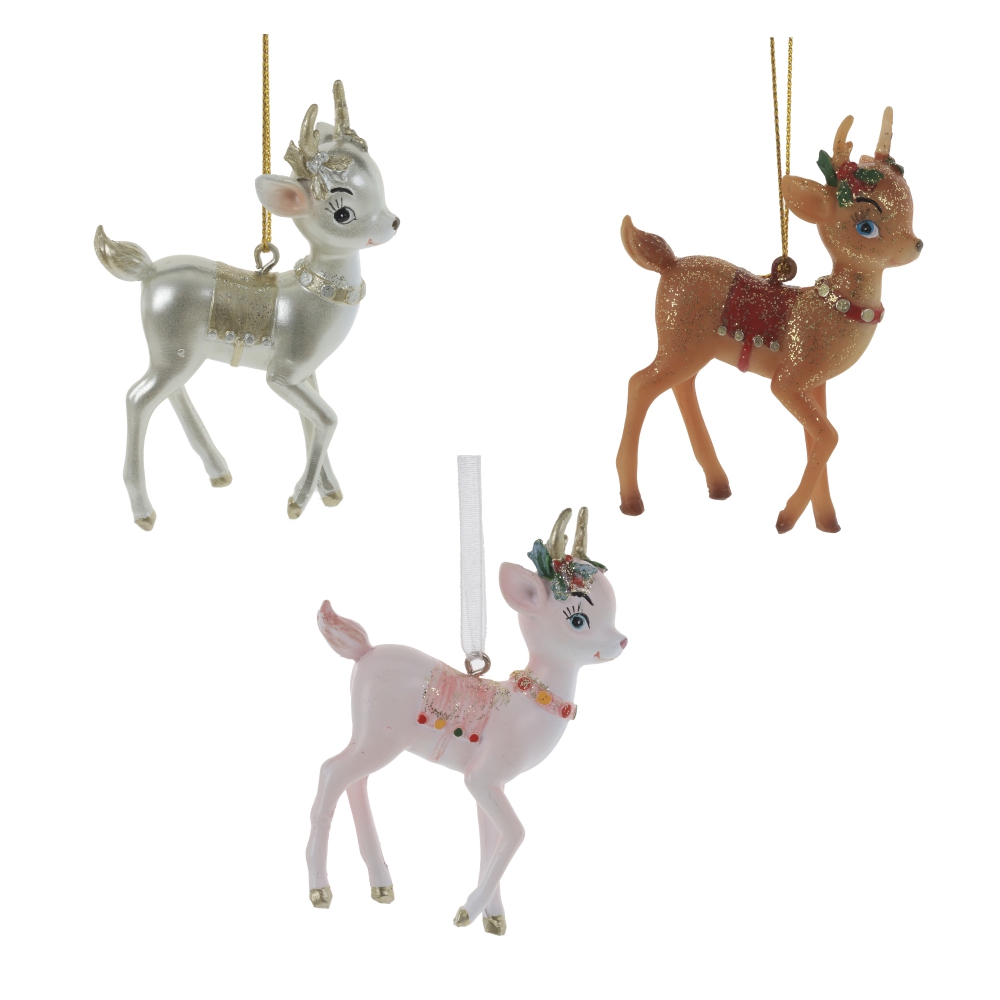 Новогоднее подвесное украшение Олененка добавит нотку лесного очарования вашему хвойному деревцу и чудесно дополнит праздничное убранство. Представлено в трех вариантах.