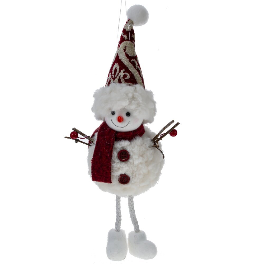 Декоративное подвесное изделие "Снеговик" – мягкая елочная игрушка, которая добавит уют и радость в ваш дом. Веселый, пушистый снеговик представлен в трех вариантах: в шапке, в колпаке и в ушанке. Яркие аксессуары и висячие ножки-шнурочки с ботиночками делают его еще более привлекательным. Отличный выбор для создания праздничной атмосферы!