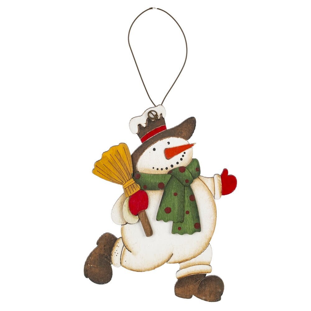 Декоративное подвесное изделие из дерева в виде Снеговика станет ярким и запоминающимся элементом новогоднего украшения. Фигурка выполнена в традиционных новогодних цветах — традиционном для Изделие снабжено удобной петелькой для подвешивания, что позволяет разместить его на ёлке, венке, гирлянде или в новогодней композиции. Благодаря своему яркому оформлению и праздничному дизайну,данное украшение прекрасно впишется в любой интерьер и наполнит дом атмосферой уюта, тепла и ожидания чуда.