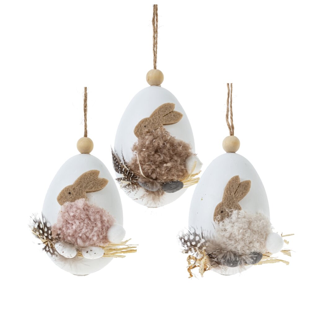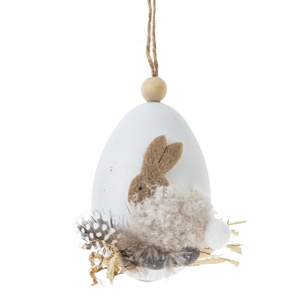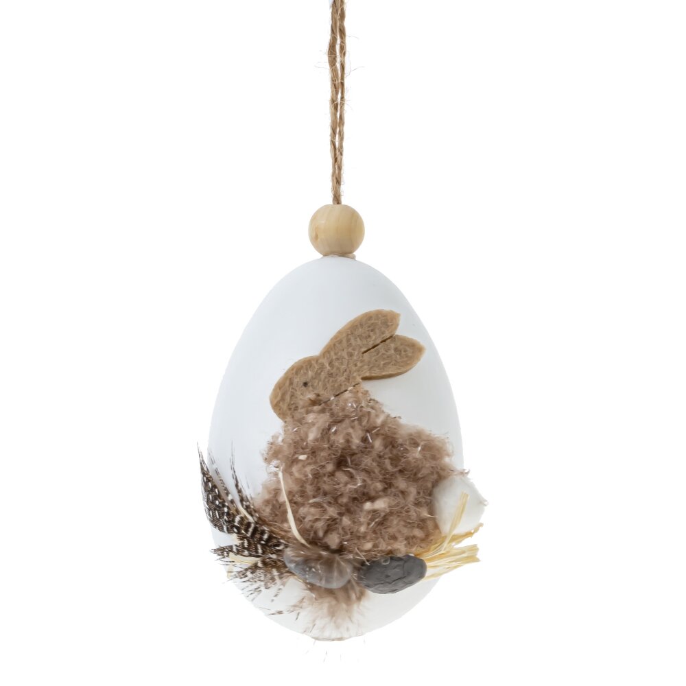 Подвесное декоративное изделие «Яйцо» – нежное пасхальное украшение для дома. Белые яйца из прочных полимерных материалов оформлены текстильными фигурками зайчиков . Внизу композиции – миниатюрное гнездышко из соломы с декоративными перышками и маленькими яичками, создающими атмосферу весеннего уюта. Благодаря петельке из шнура декор удобно повесить на ветки, дверцу шкафа, люстру или пасхальное дерево. Такое украшение подчеркнёт праздничный интерьер, подойдёт для сервировки стола, фотозоны или в качестве милого подарка к Пасхе. Представлено в трех вариантах.