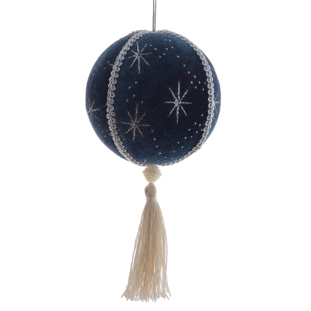 Декоративное подвесное украшение “Звездный Шар” из пенопласта покрыто бархатным материалом в синем цвете, украшено небесными звездами и серебряной тесьмой. Низ шара украшает белая кисточка. Это элегантное новогоднее украшение придаст праздничный вид вашему интерьеру. Он будет отлично смотреться в любом уголке дома, придавая интерьеру уют и праздничный дух.