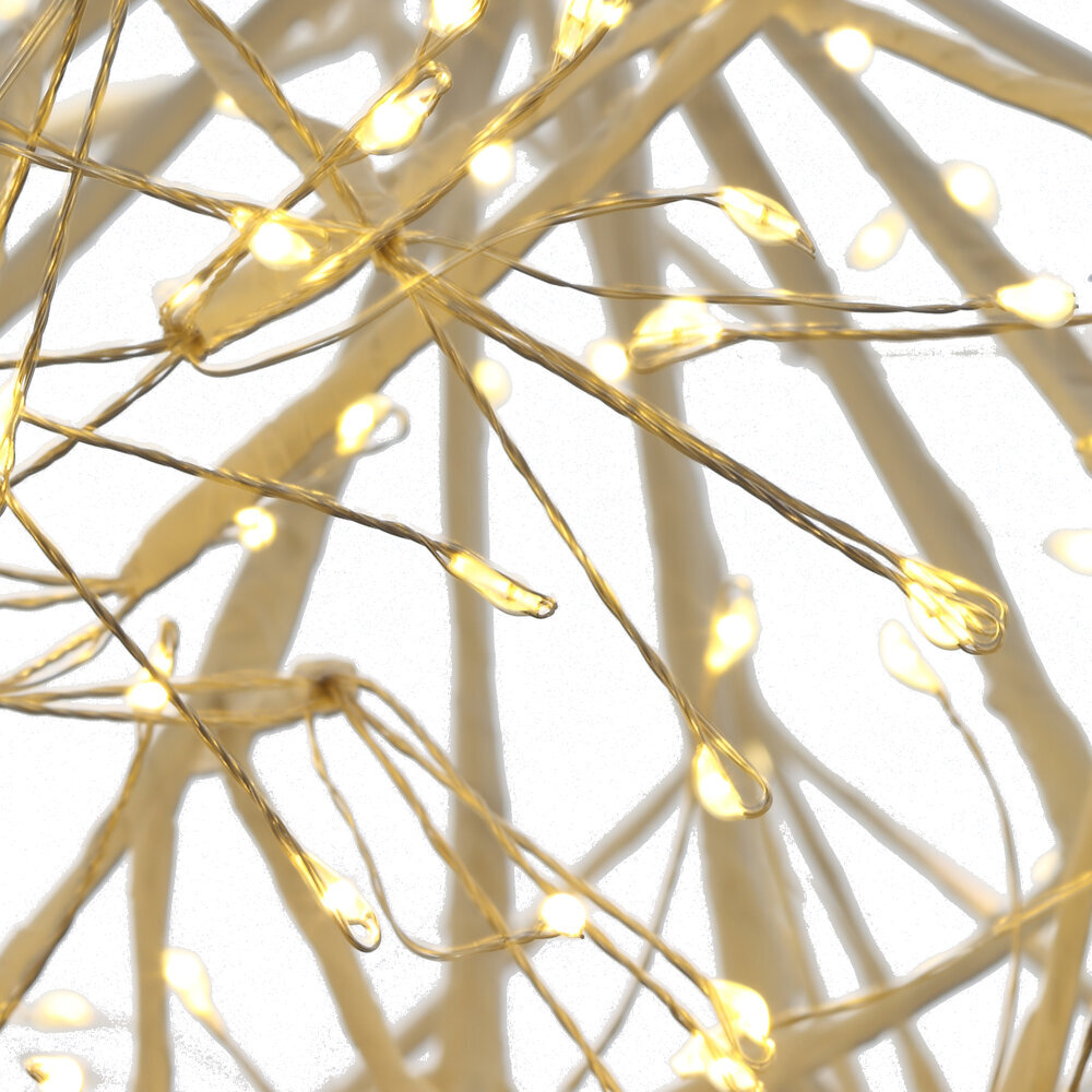 Декоративное изделие с подсветкой «Шар» — выразительный акцент для современного интерьера. Сферическая конструкция выполнена из полимерных материалов и металла, окрашена в белый цвет. Множество крошечных огоньков образуют воздушный объем, похожий на одуванчик или искрящийся салют, наполняя пространство мягким, уютным сиянием. Такой светящийся шар гармонично смотрится над камином, в гостиной, спальне или зоне праздников, легко сочетается с классическим и современным декором. Прочный, легкий и эстетичный, он становится центральным элементом композиции, создавая атмосферу тепла и торжества в любое время года. Мягкая подсветка идеальна для вечеров, фотозон, праздничного декора и повседневной атмосферы спокойствия. Гибкие ветви можно аккуратно расправить. Изделие подвешивается за специальную петельку. Размер: L45 W45 H45 см. Материалы: полимерные материалы, металл. Цвет: белый. Ветки: 24 шт. Светодиоды: 576 шт. Свет: белый теплый (постоянное свечение). Длина шнура: 5 м. Степень защиты (IP): IP 44. Тип питания: от сети.
