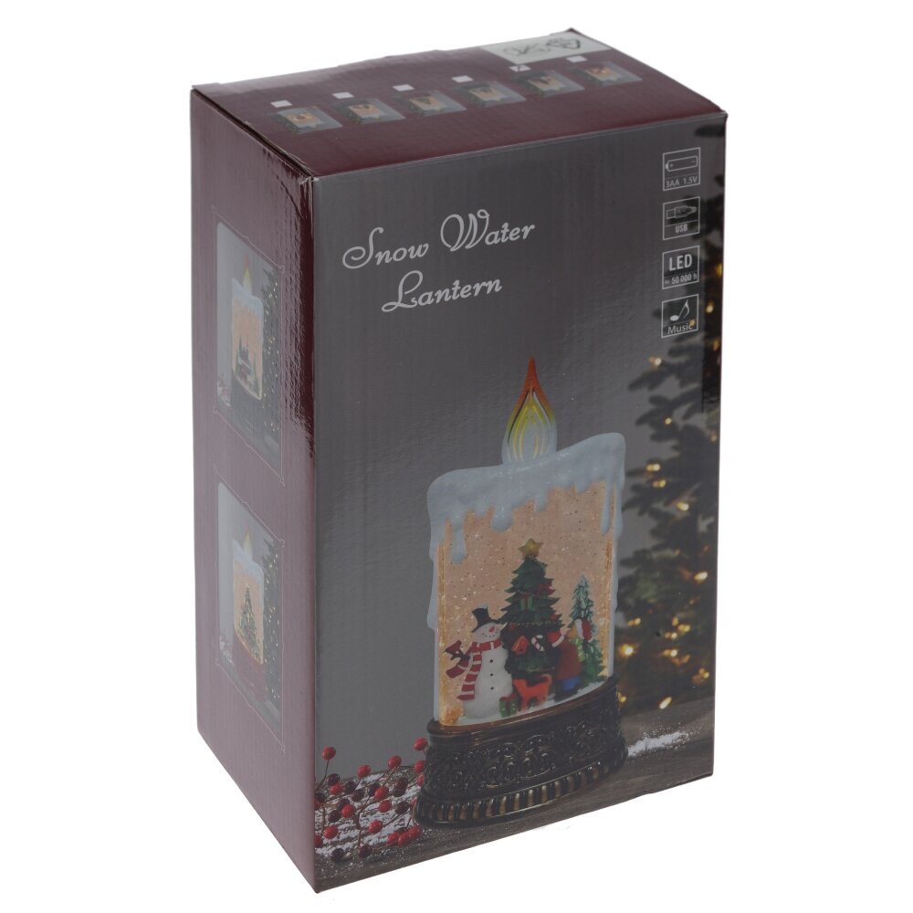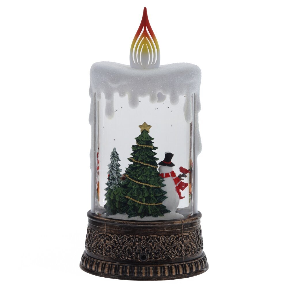 Изделие в виде Свечи - замечательное праздничное украшение, которое хочется долго рассматривать и держать в руках. Новогодняя сцена внутри свечи представлена фигурками снеговика и ребенка около наряженной ели. При включении работает подсветка и вьюгой поднимается серебристый глиттер, оживляя композицию. А восемь новгодних мелодий создают праздничное настроение. Этот уникальный подарок приносит с собой уют и теплые воспоминания о детстве. Может использоваться в качестве ночника, так как имеет два режима - с музыкой и без. Работает от трех батареек ААА (не прилагаются), а также от провода USB, который входит в комплект.
