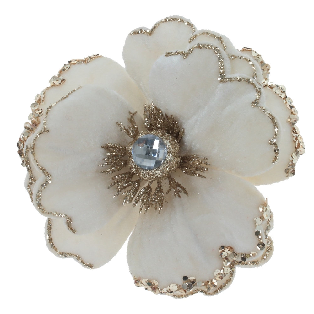 Объемный цветок с бархатными лепестками , с декором из блесток и красивой сердцевинкой. Прекрасное украшение для новогодней елки и флористических композиций.