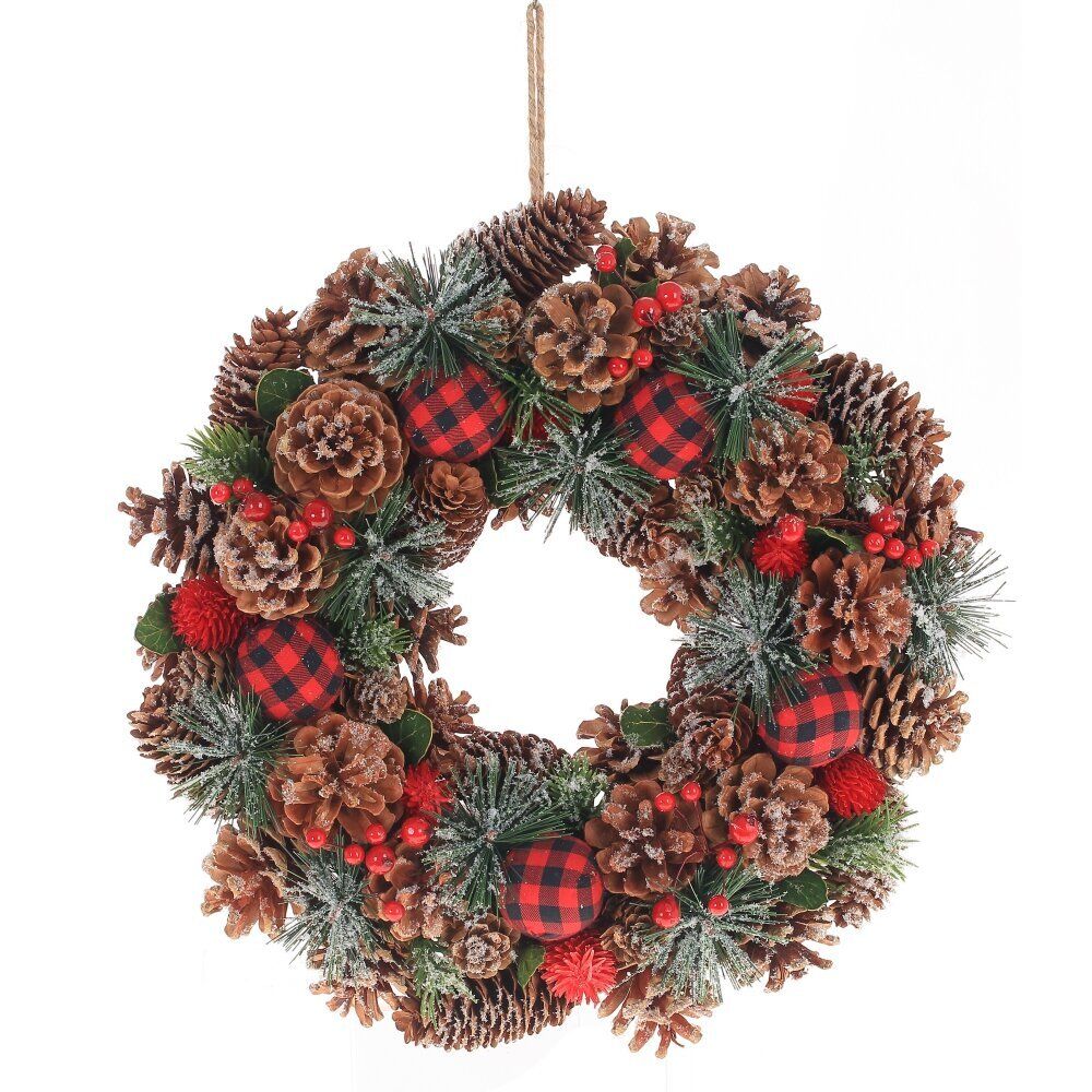 Интерьерный венок буквально усыпан разнообразными натуральными шишками, а так же искусственными ягодами, листьями и хвойными ветками. Такой рождественский венок поможет создать праздничное настроение и уютную атмосферу в вашем доме.