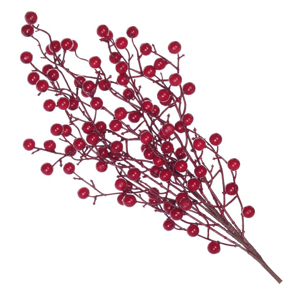 Очень эффектно смотрятся полыхающие красные ягоды. Эта контрастная ветка, несомненно, заслуживает почётного места в праздничной композиции.