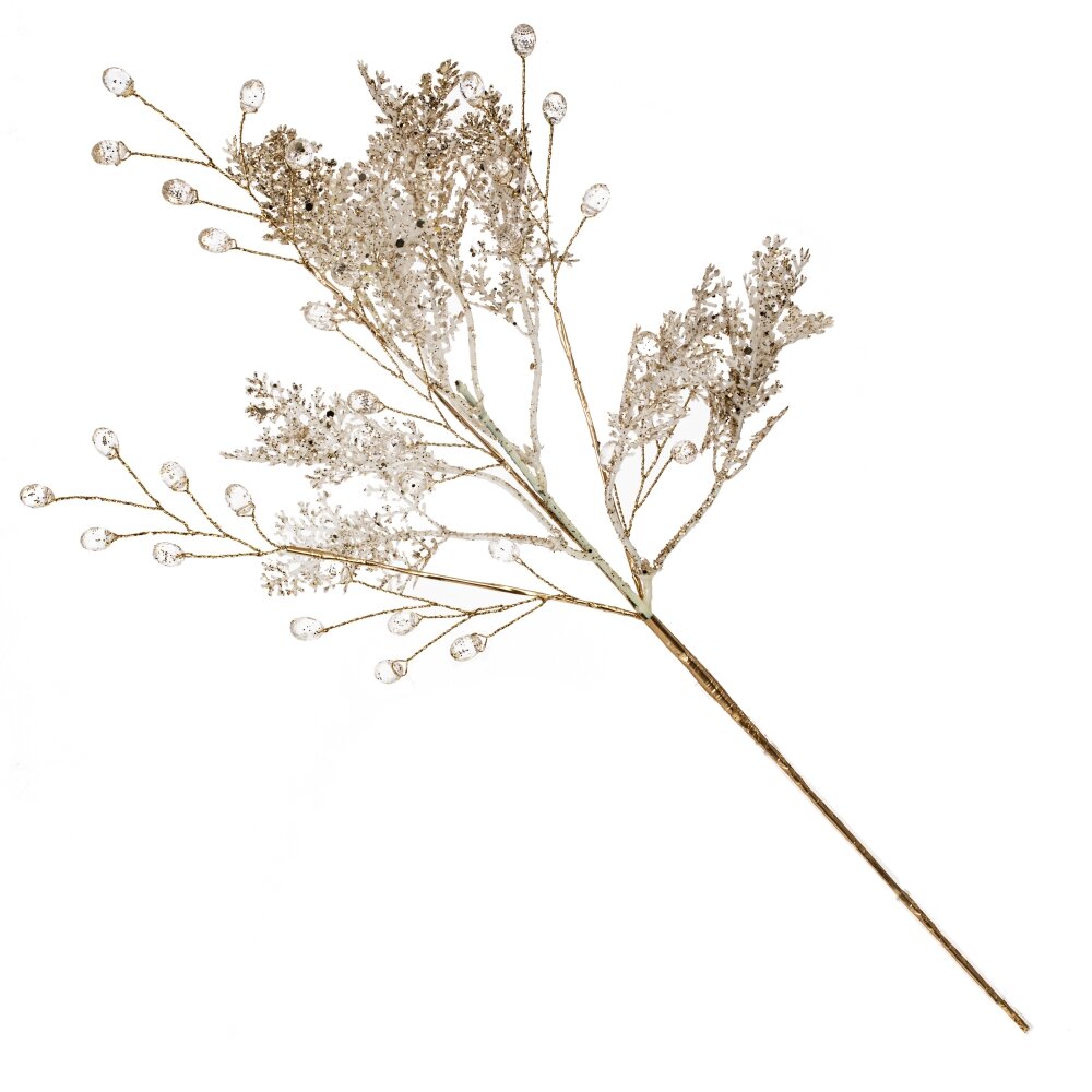 Элегантное новогоднее украшение — ветка высотой 40 см, выполненная в изысканном золотом цвете, станет ярким акцентом праздничного декора. Ажурные листочки придают ей воздушность и утонченность, создавая ощущение легкости и роскоши. Особое внимание привлекают каплевидные стразы, которые красиво мерцают при освещении, создавая эффект волшебного сияния. Это стильное украшение идеально подойдёт для оформления новогодних композиций, декора елки, праздничного стола или интерьера. Ветка прекрасно сочетается с другими элементами в классическом и современном стилях, добавляя блеск и шарм в любую композицию.