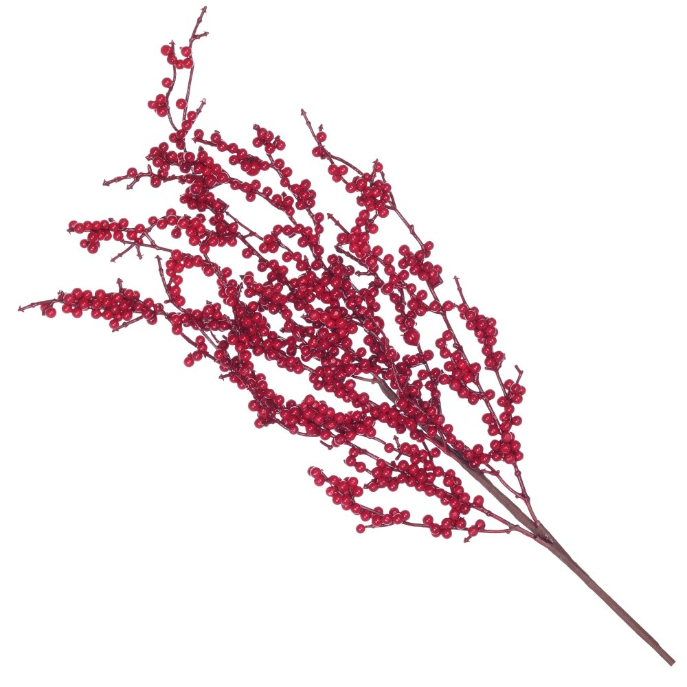 Очень эффектно смотрятся полыхающие красные ягоды. Эта контрастная ветка, несомненно, заслуживает почётного места в праздничной композиции.