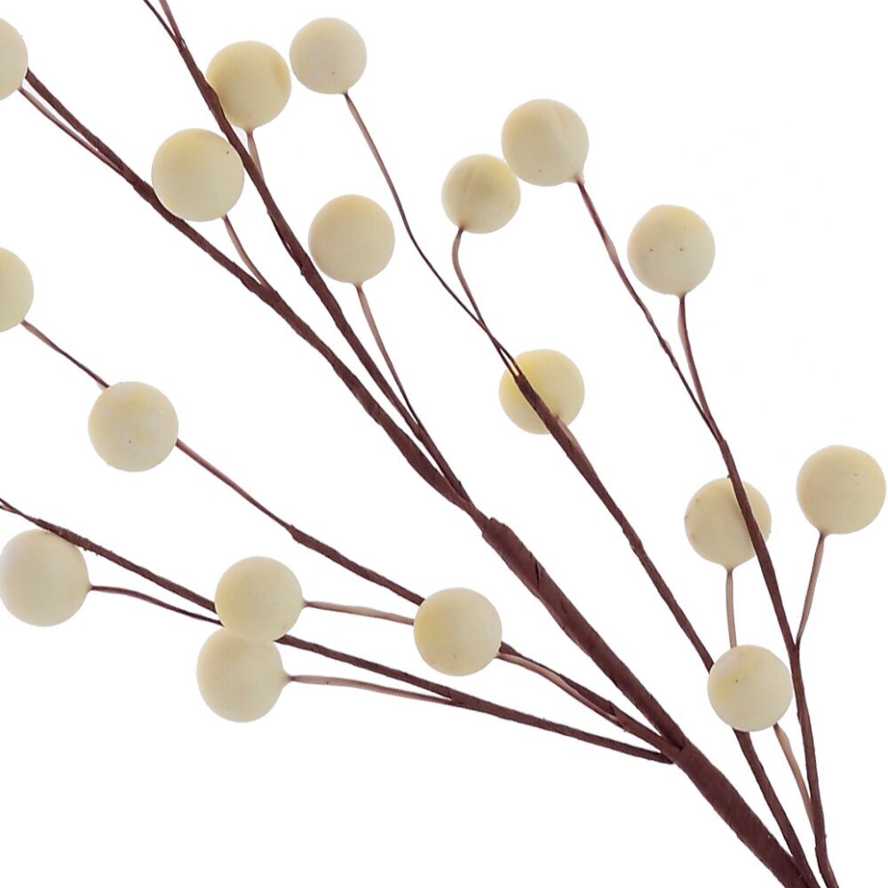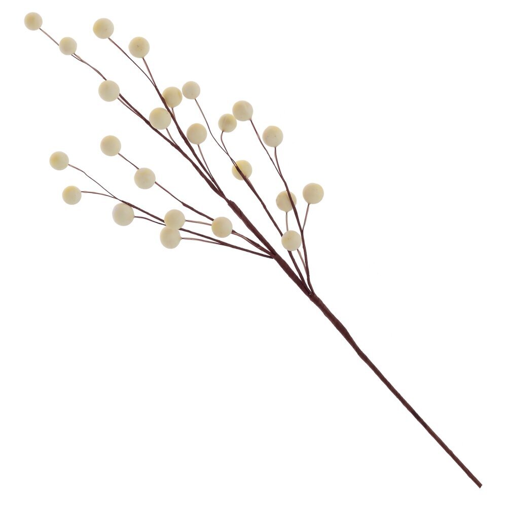 Декоративная ветка с белыми ягодами с нежным желтым оттенком, имеющая высоту 51 см, идеально подходит для различных интерьерных решений. Эту ветку можно использовать для создания фееричных новогодних композиций, для украшения елки или просто поместить в элегантную вазу. Ее изящный дизайн и праздничный вид подарят вашему интерьеру уютную атмосферу новогоднего волшебства.